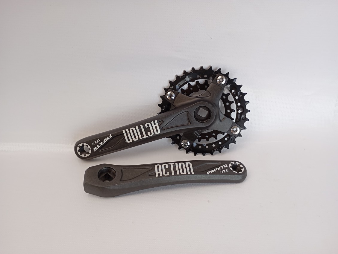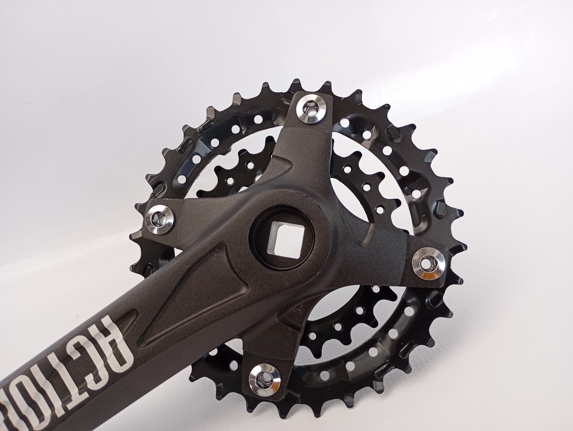 Brand new 2X square taper crank set with 32T and 22T chainrings, arm length 172.5. Material; Alloy cranks and steel chainring. Suitable for 10-11 speed drive trains.