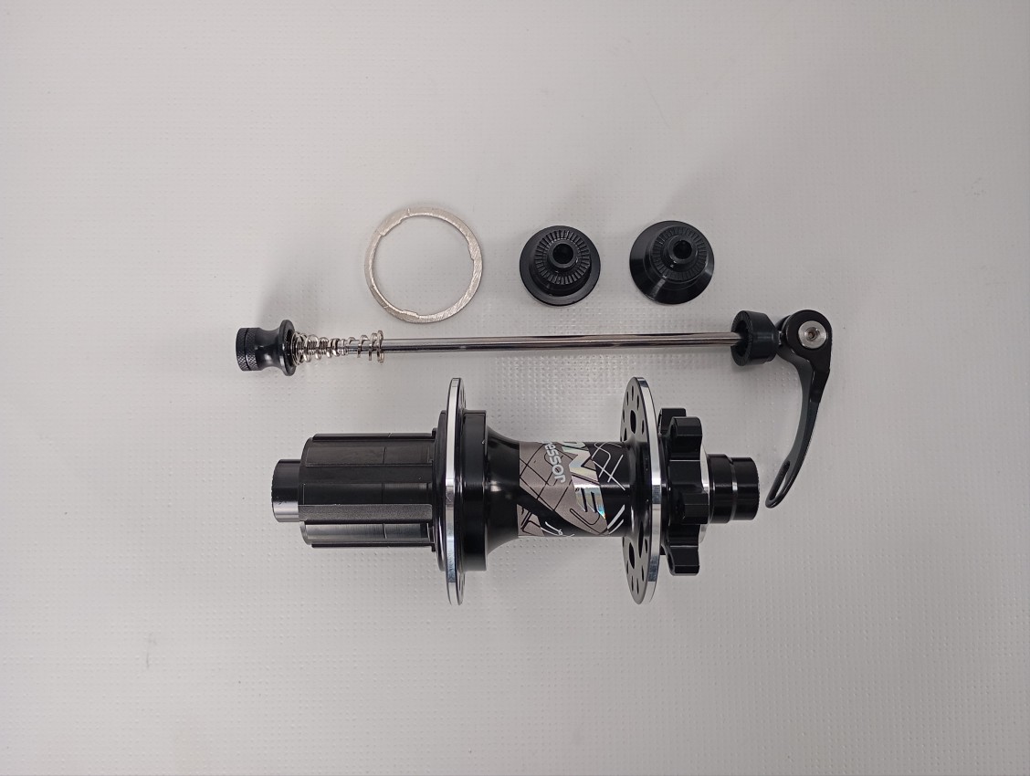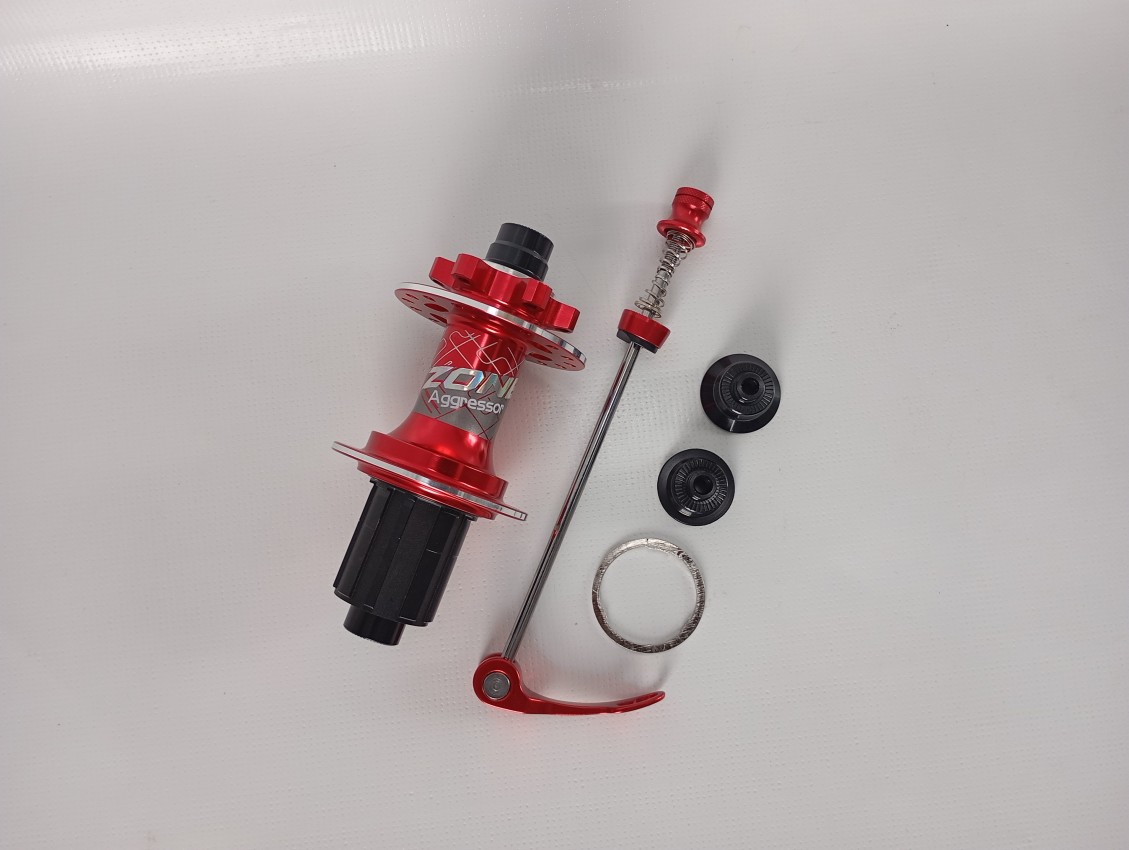 Brand new Maxzone Aggressor 32 holes through axle rear hub set. With through axle to quick release adaptor and skewer which also makes it QR compatible. The hub is also disk brake compatible and works with 6 bolt rotors. Compatible with 10-12 speed cassettes.