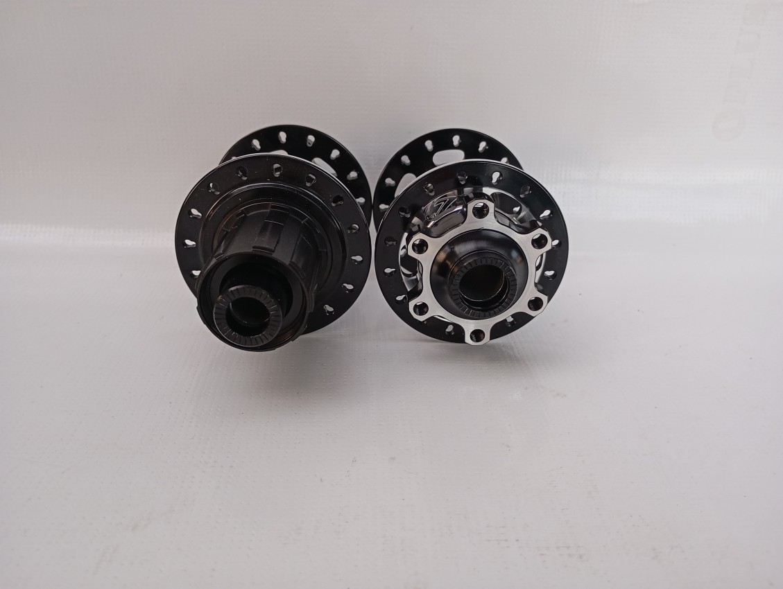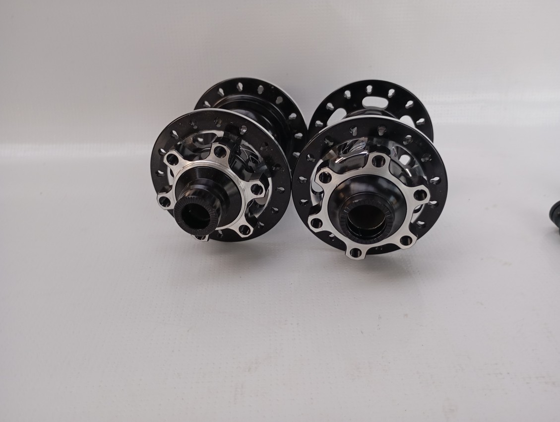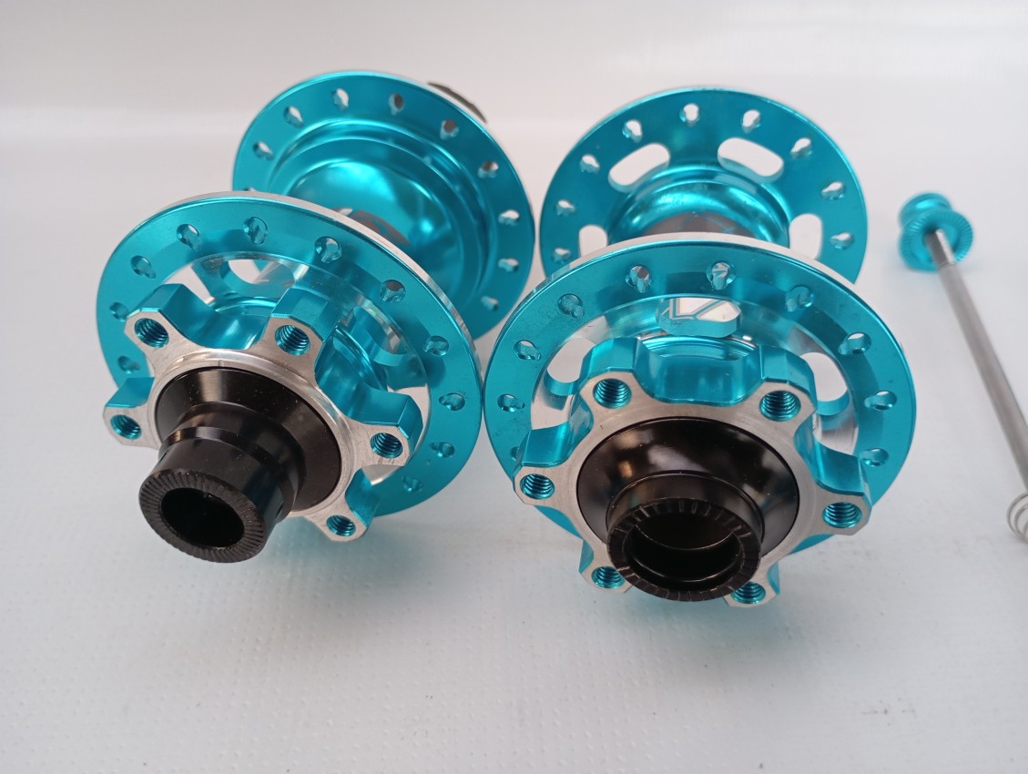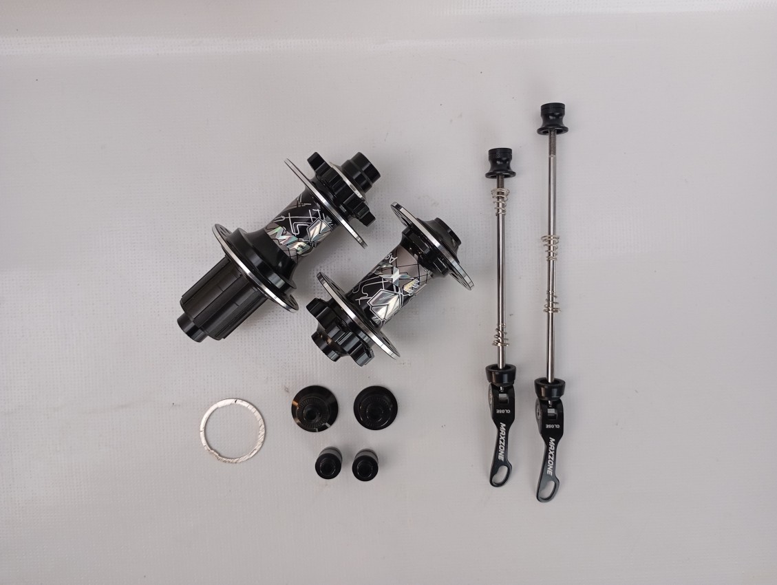 Brand new Maxzone Aggressor 32 holes  through axle hub set. With through axle to quick release adaptor and skewers which also makes it QR compatible. The hub is also disk brake compatible and works with 6 bolt rotors. Compatible with 10-12 speed cassettes.