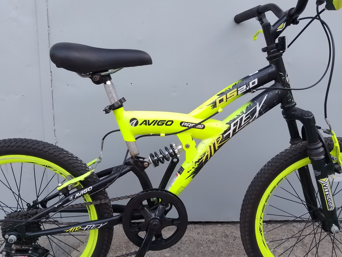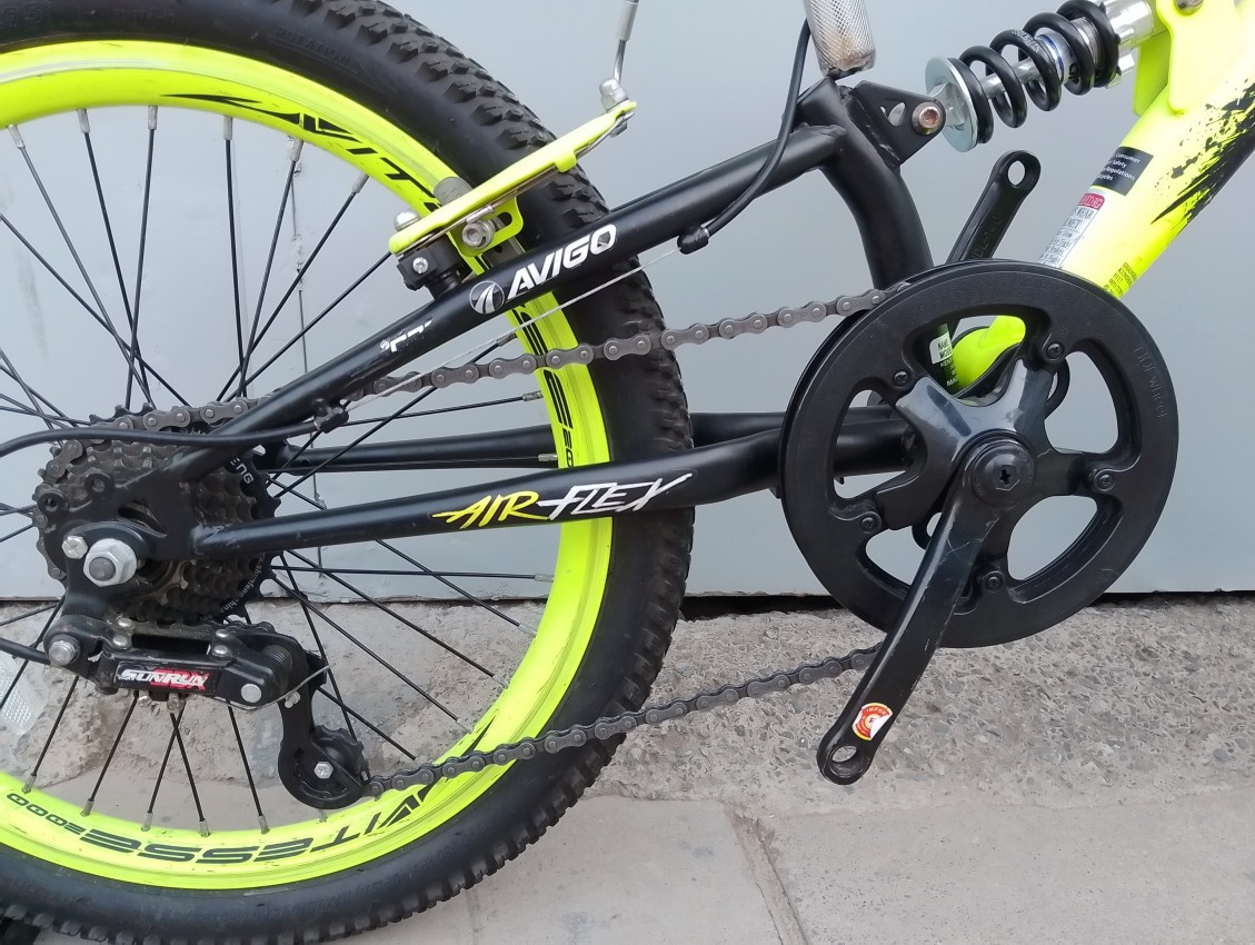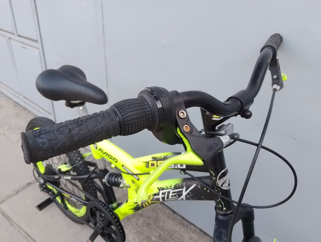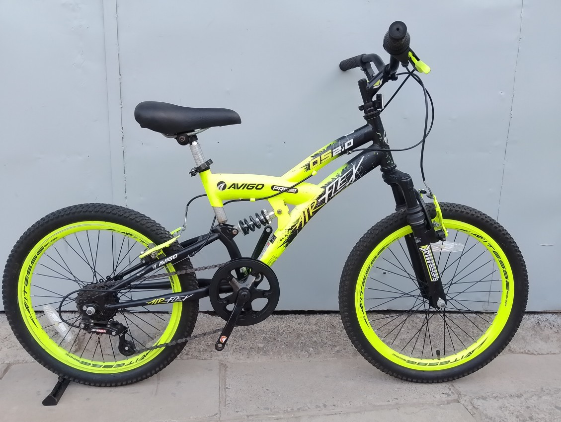 High quality used mountain bike. Wheel size 20. Frame material steel. Gear system 1x7 speed with grip shift. Cog type freewheel. Other features: Dual suspension with steel suspension fork. Suitable for ages 6-11 years.