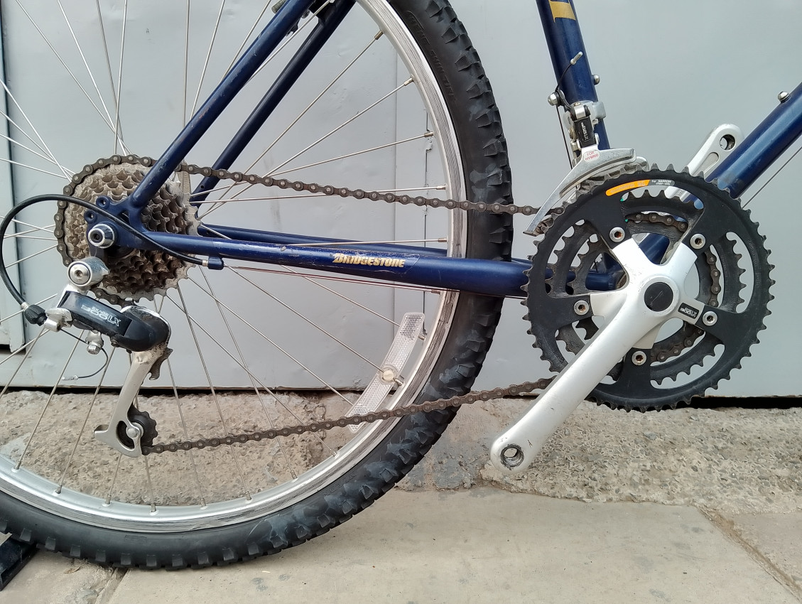 High quality used mountain bike. Wheel size 26. Frame material steel. Top tube 21.5', seat tube height 18'. Gear system 3x7 with thumb shifters. Cog type cassette.quick release on all wheels.