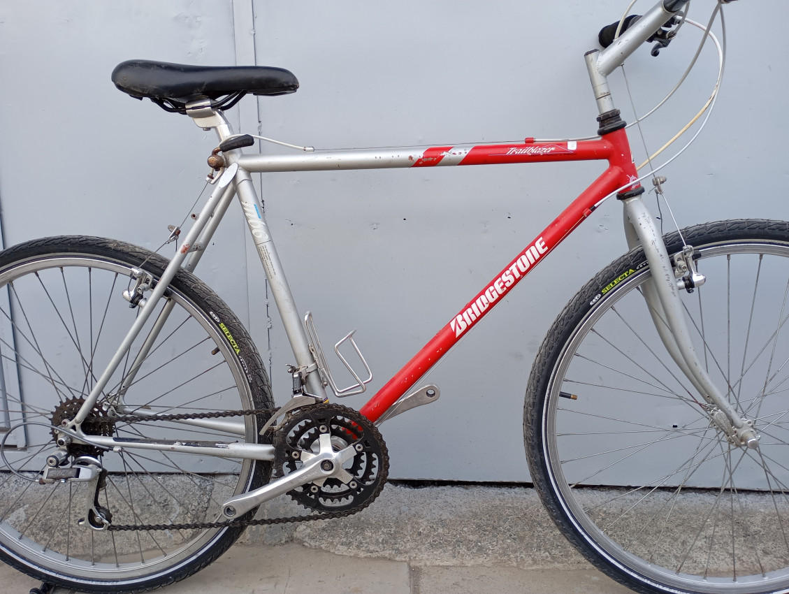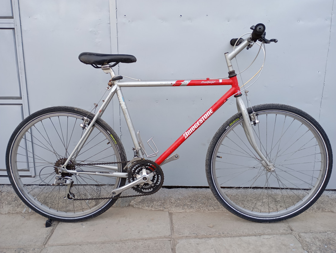 High quality used mountain bike. Wheel size 26. Frame material steel. Top tube 23', seat tube height 20'. Gear system 3x6 with thumb shifters. Cog type freewheel.quick release on all wheels.