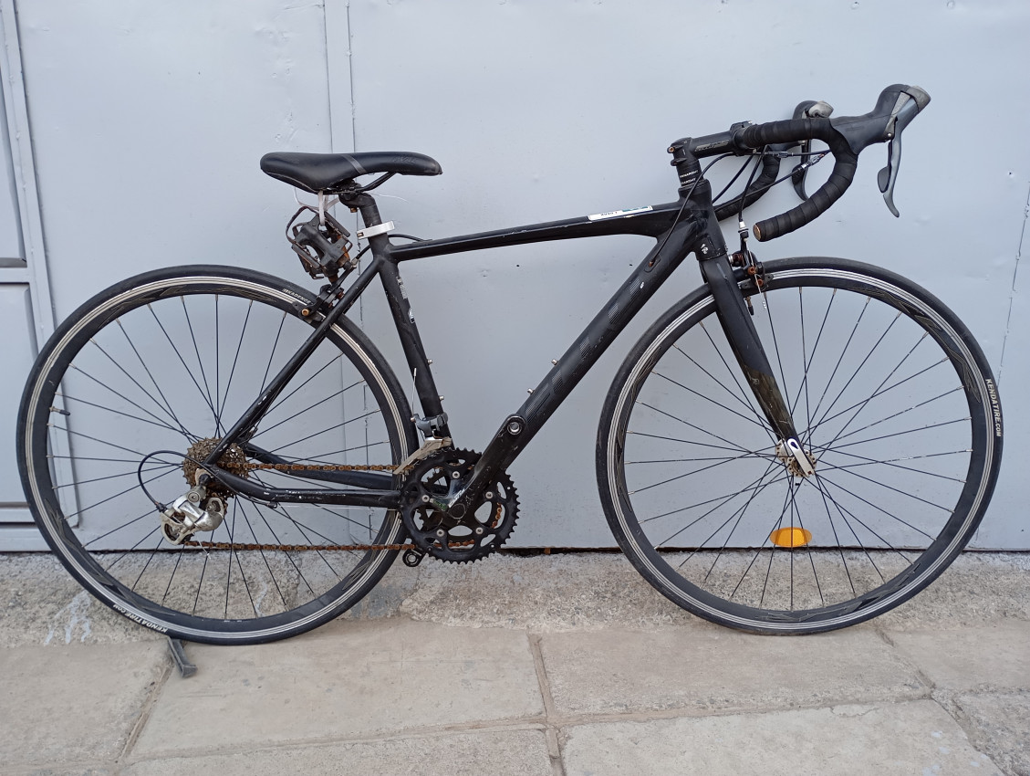 High quality used race bike. Wheel size 700c. Frame material Aluminium with carbon fork.Top tube 52cm, seat tube height 47cm . Gear system 2x8 with STI shifters. Cog type cassette. Other features: sealed BB, all wheels have quick release, carbon fork.
