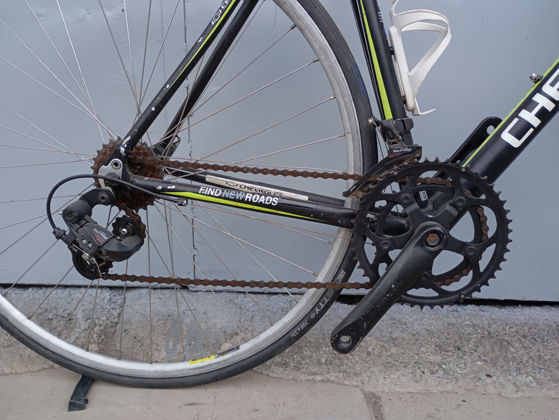 High quality used race bike. Wheel size 700c. Frame material Aluminium with aluminium fork.Top tube 51cm, seat tube height 51cm . Gear system 2x7 with shimano STI shifters. Cog type cassette. Other features: sealed BB all wheels have quick release, aluminium fork.
