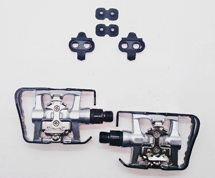 Brand new clipless FPD pedals, Spd compatible single sided Clip in mechanism. It includes a pair of shimano SPD compatible cleats. (1010774)