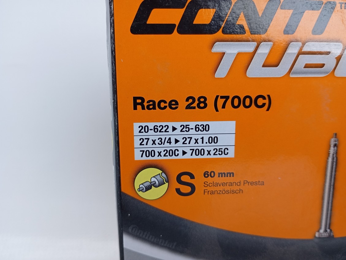 Brand new tube, 700x20-25c, Brand Continental. With 60mm Presta valve (FV).
