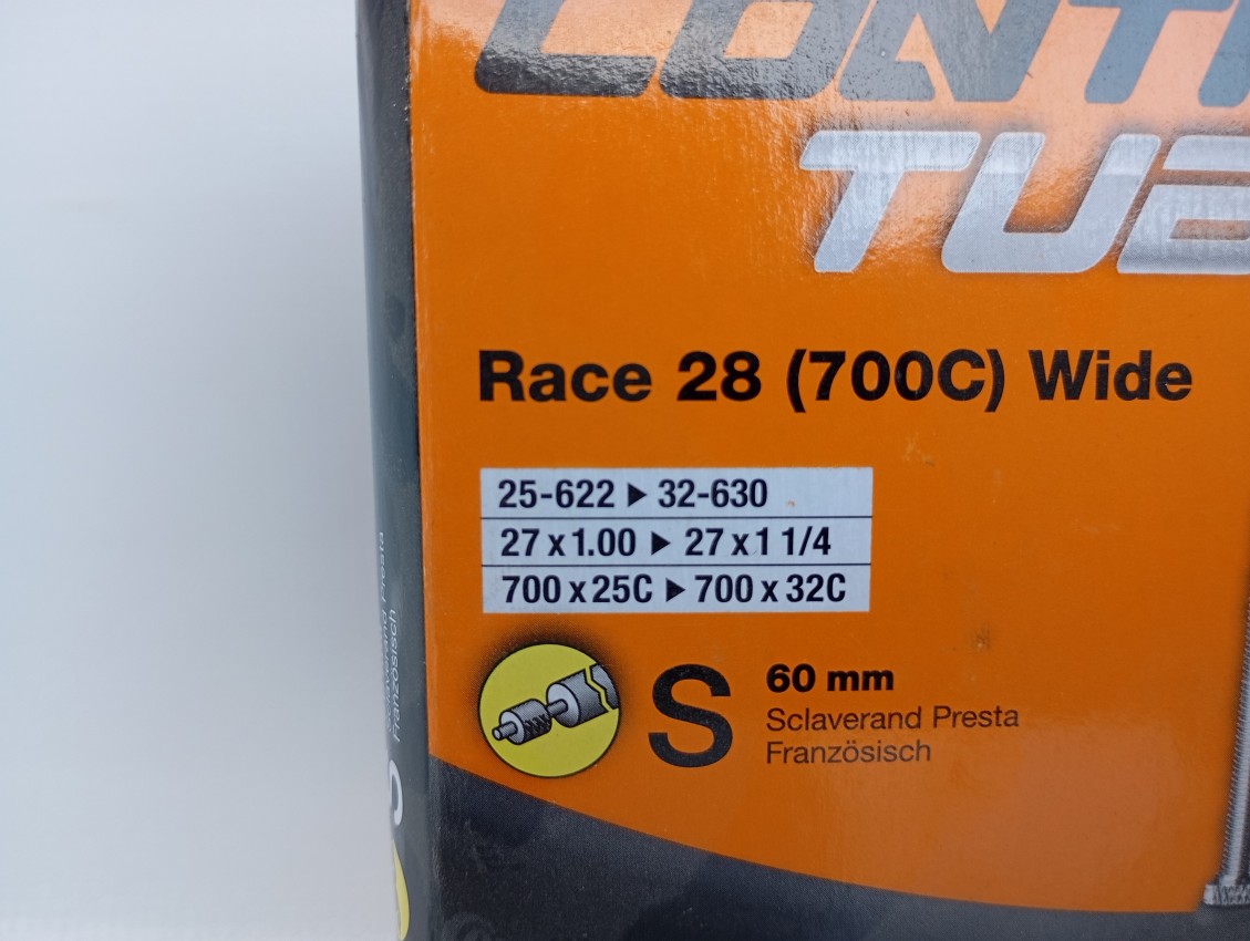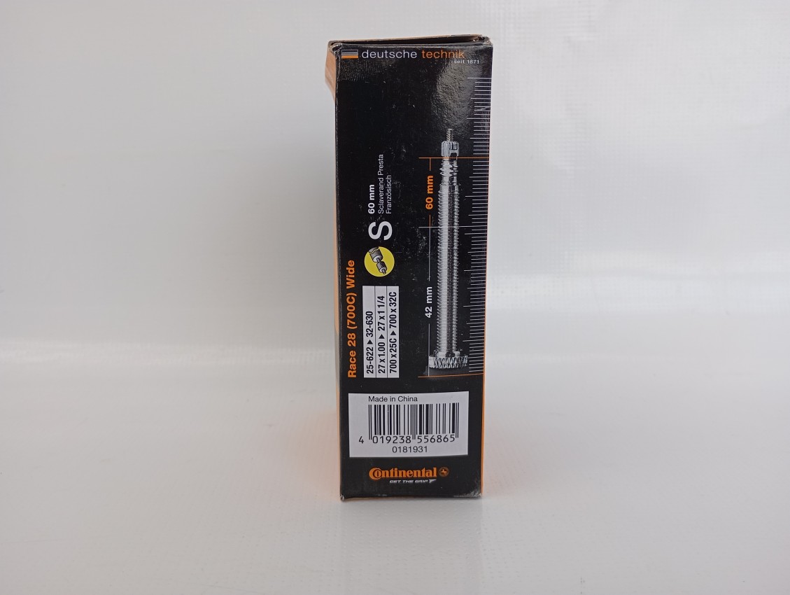 Brand new tube, 700x25-32c, Brand Continental. With 60mm Presta valve (FV).