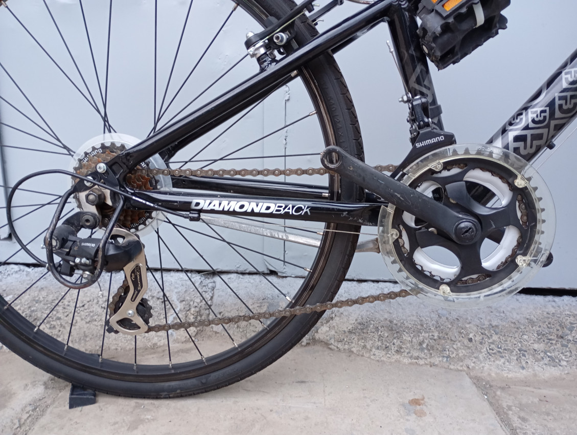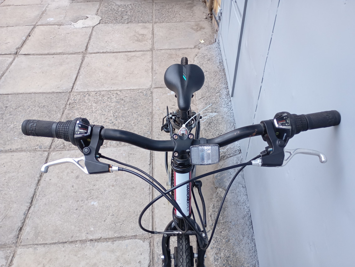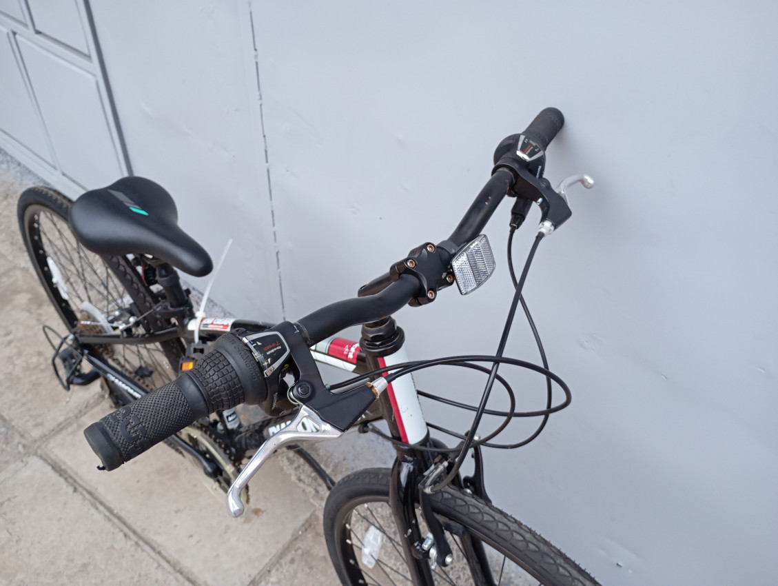 High quality used mountain bike. Wheel size 24 Frame material aluminium. Gear system 2x7 speed with grip shifters. Cog type freewheel.
