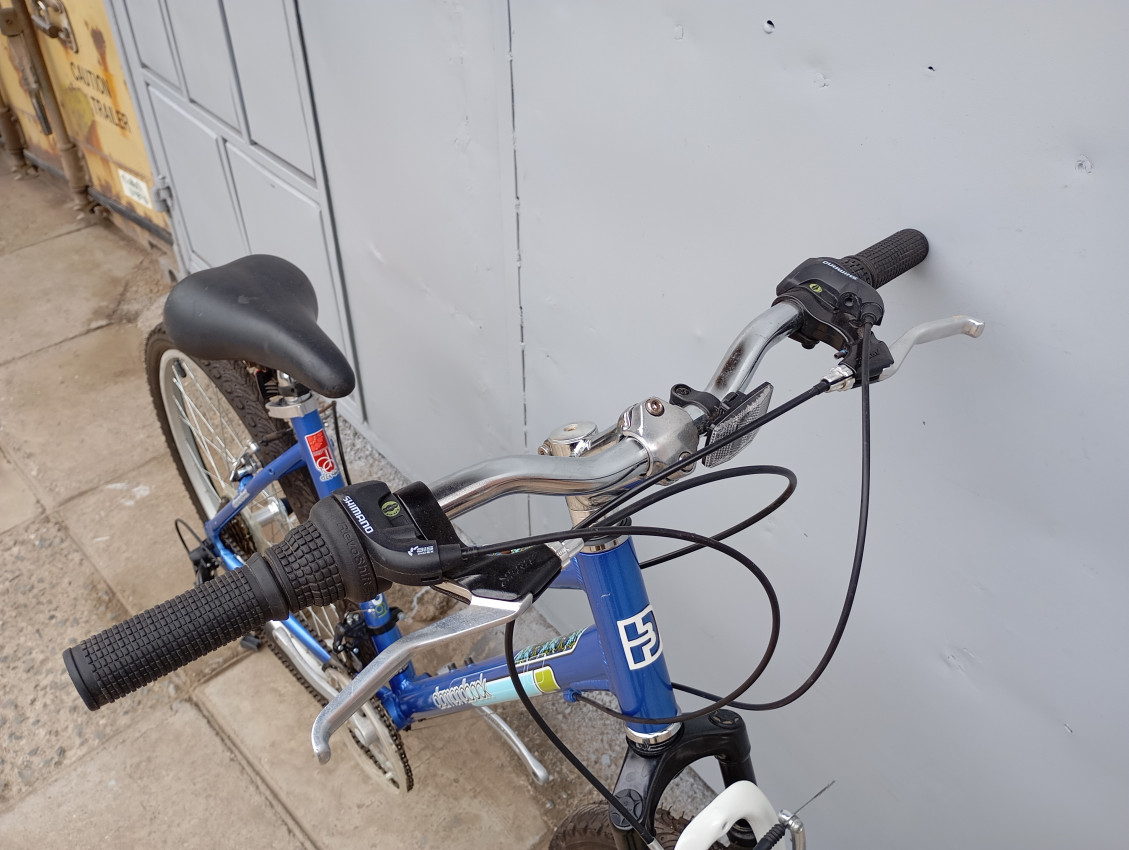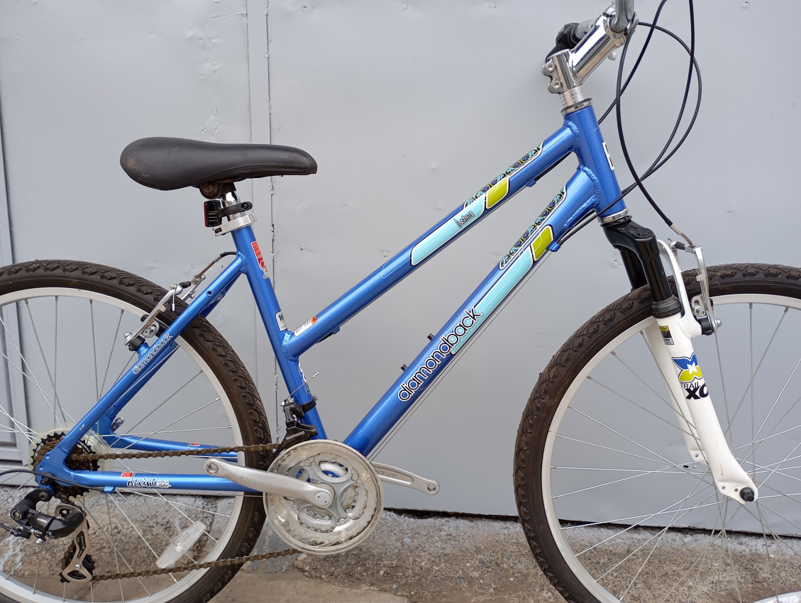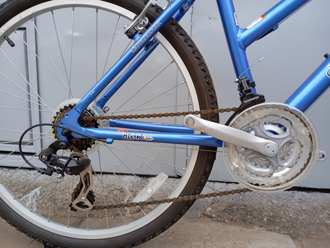 High quality used mountain bike. Wheel size 26. Frame material Aluminium with steel front suspension fork. Top tube 21', seat tube height 17'. Gear system 3x7 with shimano grip shifter. Cog type freewheel. Other features: all wheels have quick release, threadless steel suspension fork.