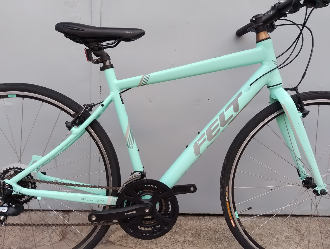 High quality used hybrid bike. Wheel size 700c. Frame material Aluminum with steel fork. Top tube 21', seat tube height 19'. Gear system 3x7 with shimano trigger shift brake levers. Cog type freewheel. Other features: sealed BB all wheels have quick release.