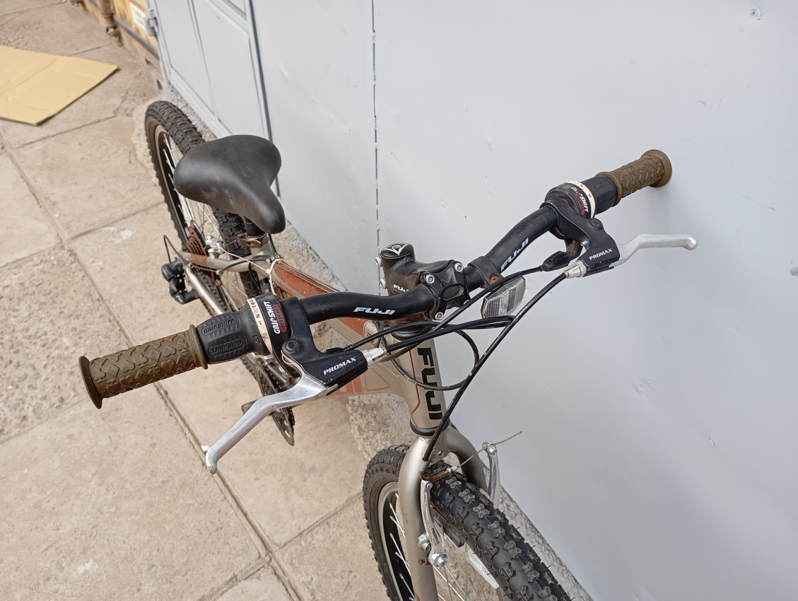 High quality used mountain bike. Wheel size 26. Frame aluminium. Top tube 20', seat tube height 13'. Gear system 3x7 with grip shifts. Cog type freewheel. Other features: all wheels have quick release, sealed BB &  threadless stem and fork.