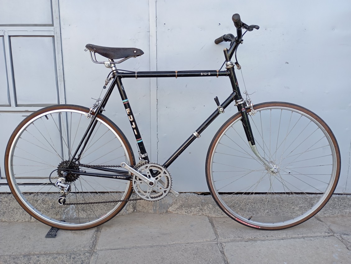 A High quality used vintage race bike. Wheel size 27 1 1/4. Frame material steel. Top tube 57cm, seat tube height 57cm. Gear system 2x6 with thumb shifts. Cog type freewheel. Other features both wheels have quick release axle.