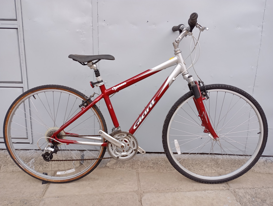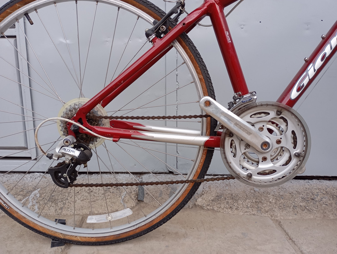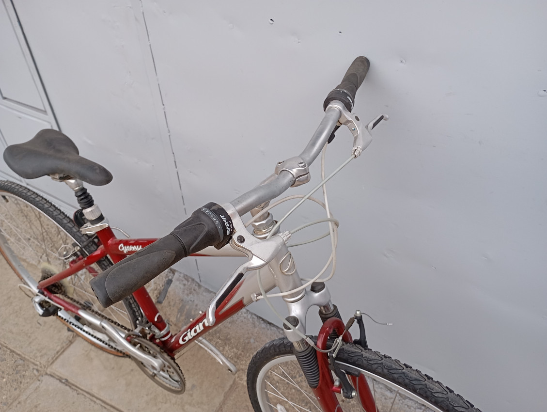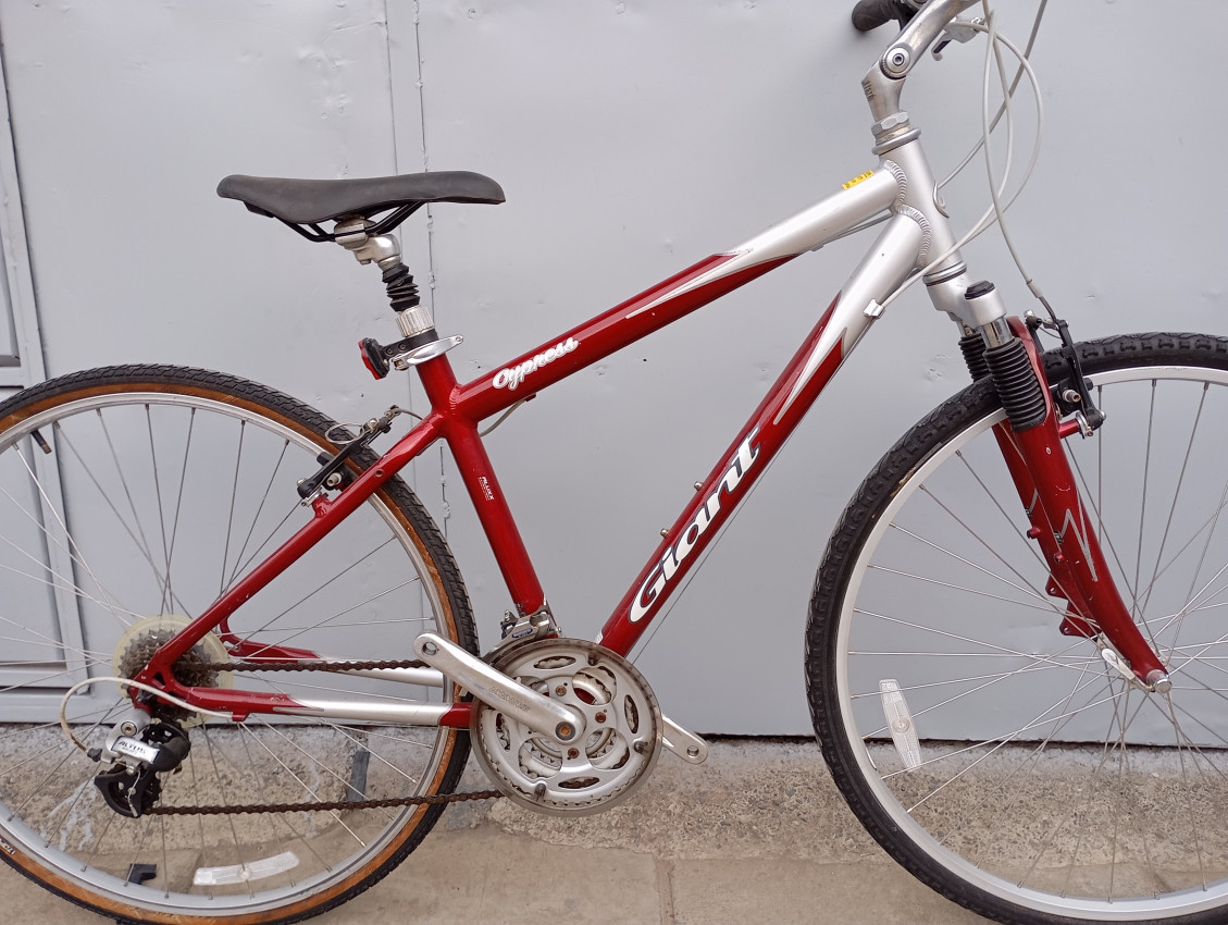 High quality used hybrid bike. Wheel size 700c. Frame material Aluminium with aluminium fork. Top tube 20.5', seat tube height 17'. Gear system 3x7 with grip shifts. Cog type freewheel. Other features: sealed BB all wheels have quick release & front alloy suspension fork.