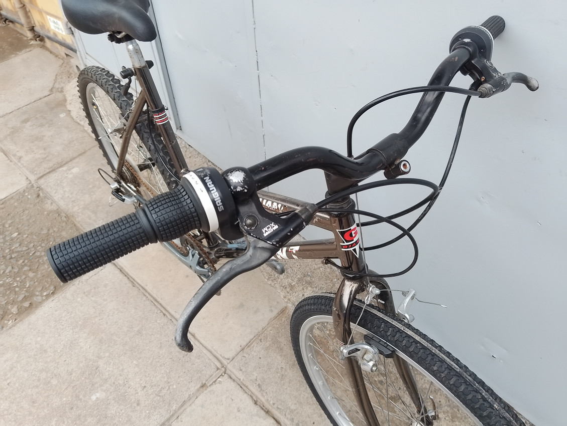 High quality used mountain bike. Wheel size 26. Frame material steel. Top tube 22.5', seat tube height 20.5'. Gear system 3x6 with 7speed  grip shifts. Cog type freewheel. Other features: Front wheels have quick release.