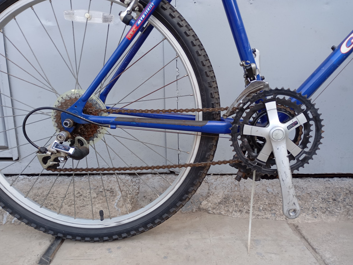 High quality used mountain bike. Wheel size 26. Frame material steel with steel fork. Top tube 21', seat tube height 18.5'. Gear system 3x7 with trigger shifts. Cog type cassette. Quick release on both wheels.
