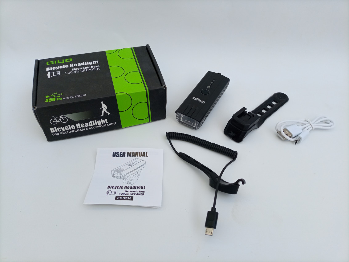 Brand new Giyo front light. With 150db horn & 450 lumens. Also comes with light sensitive sensor. (1011010)