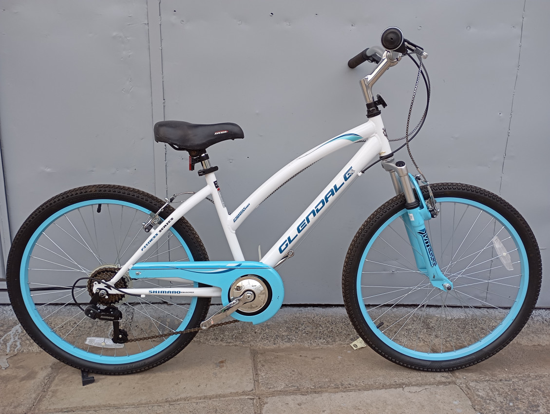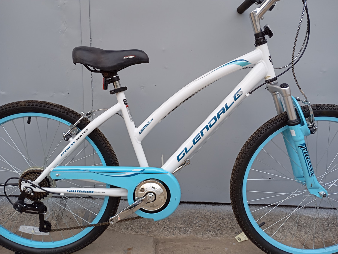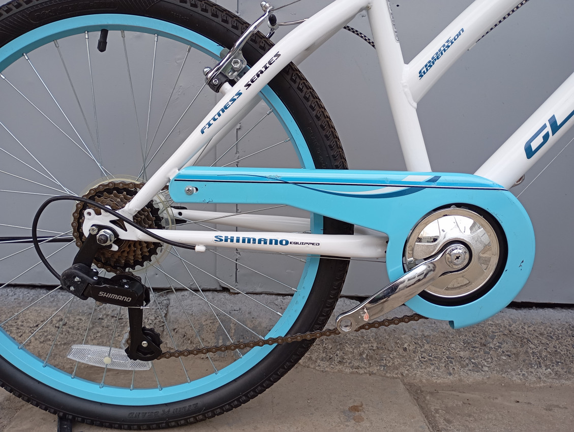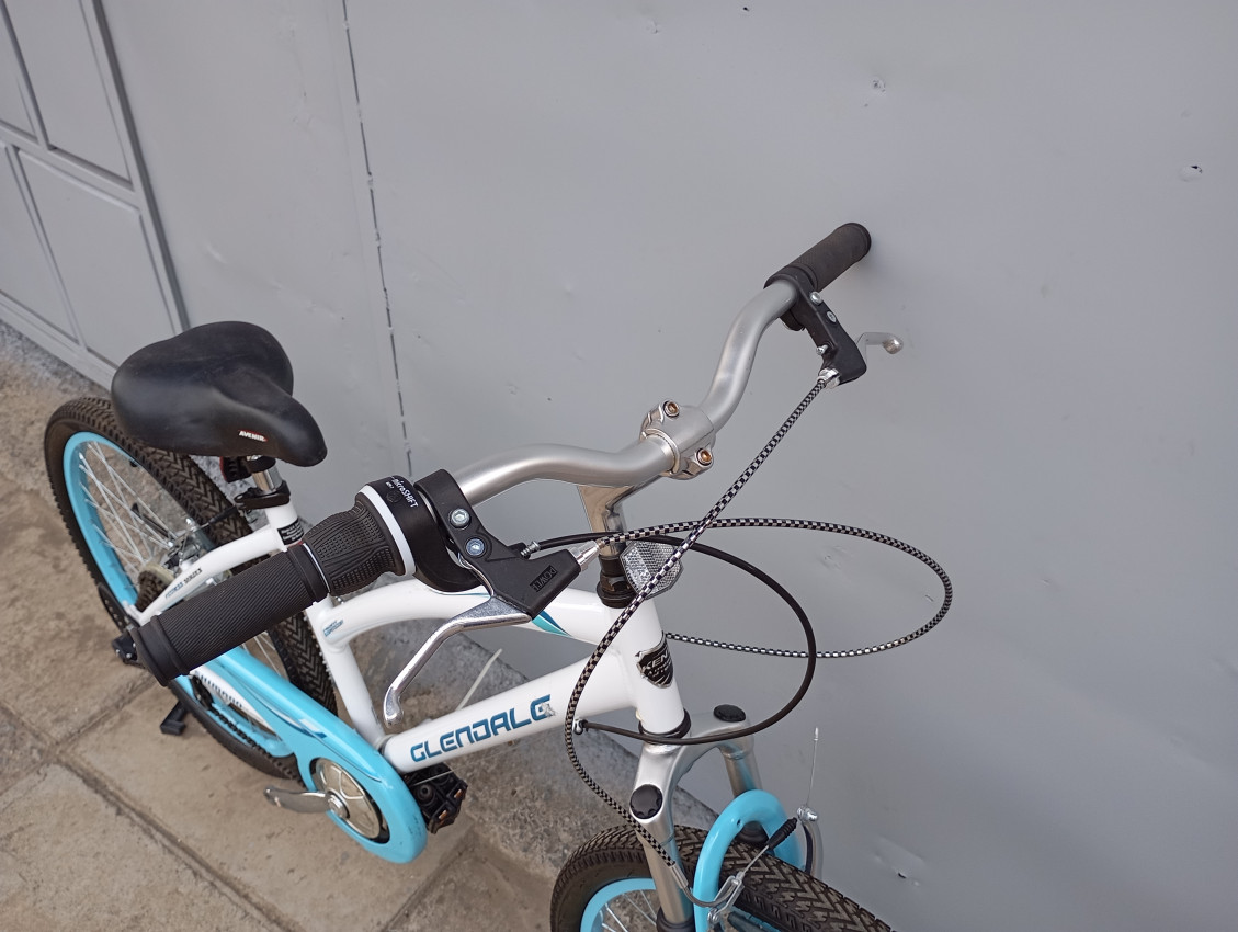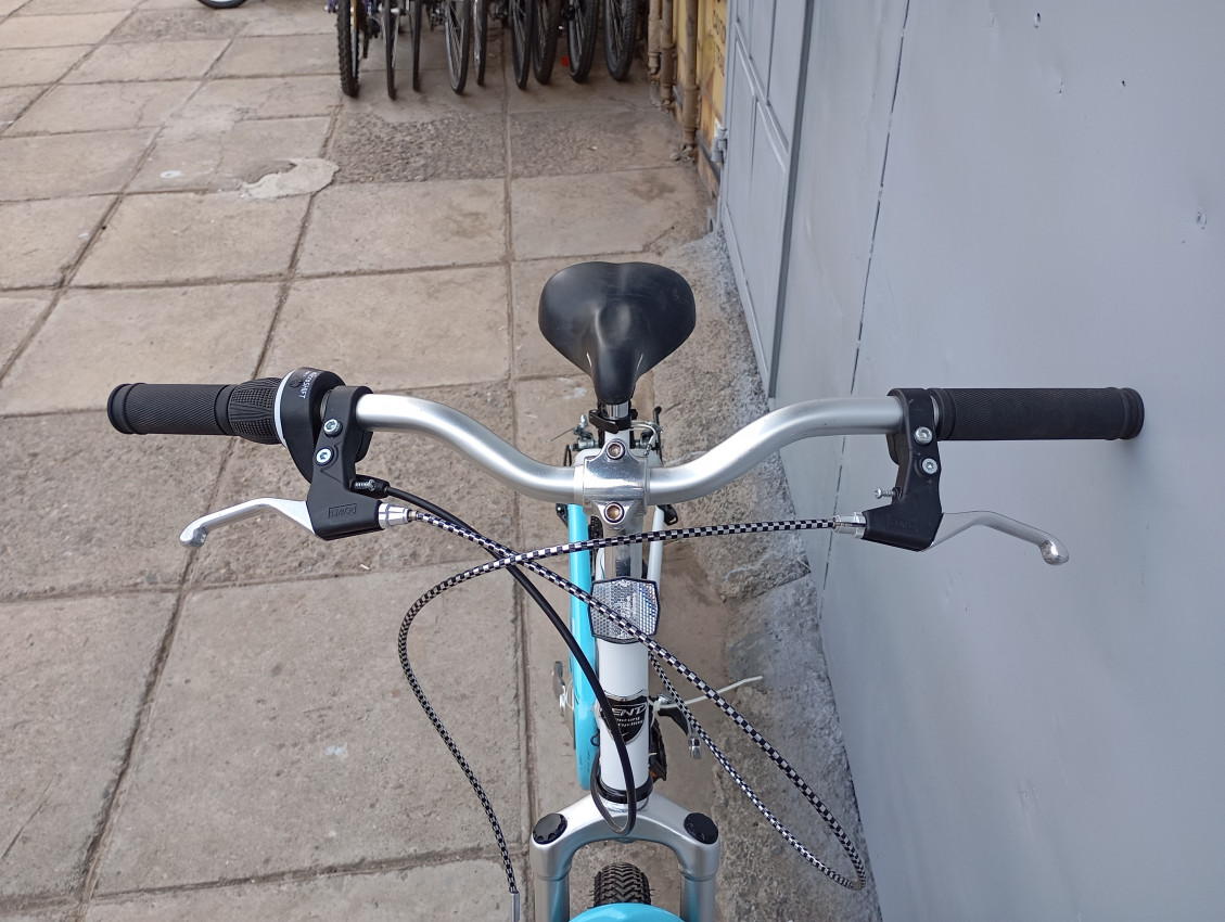 High quality used mountain bike. Wheel size 24 Frame material steel. Gear system 1x7 speed with grip shifters. Cog type freewheel