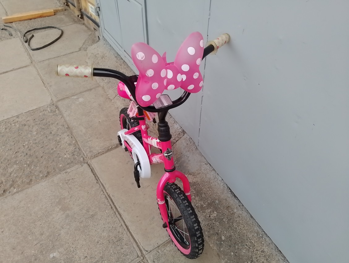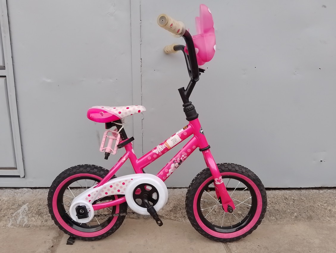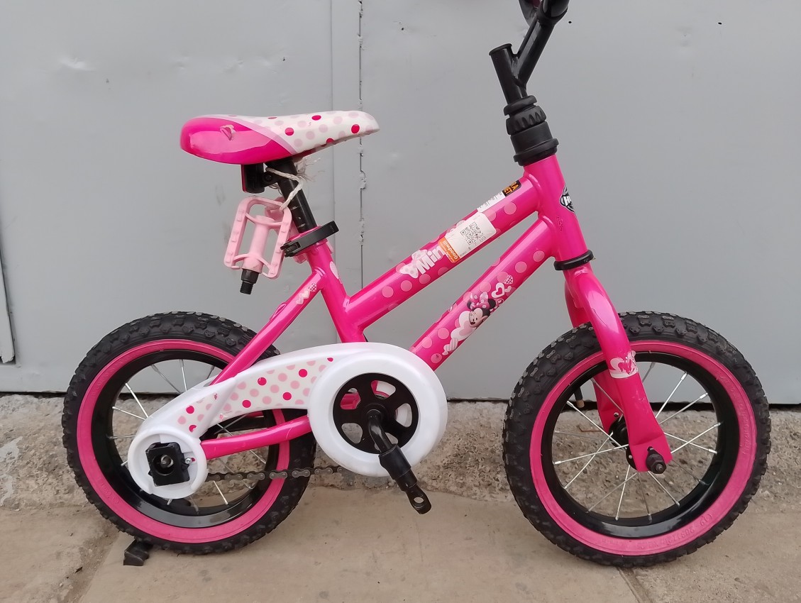 Used kids bike, wheel size 12, brand Huffy , frame material steel. Suitable for ages 2-4 years