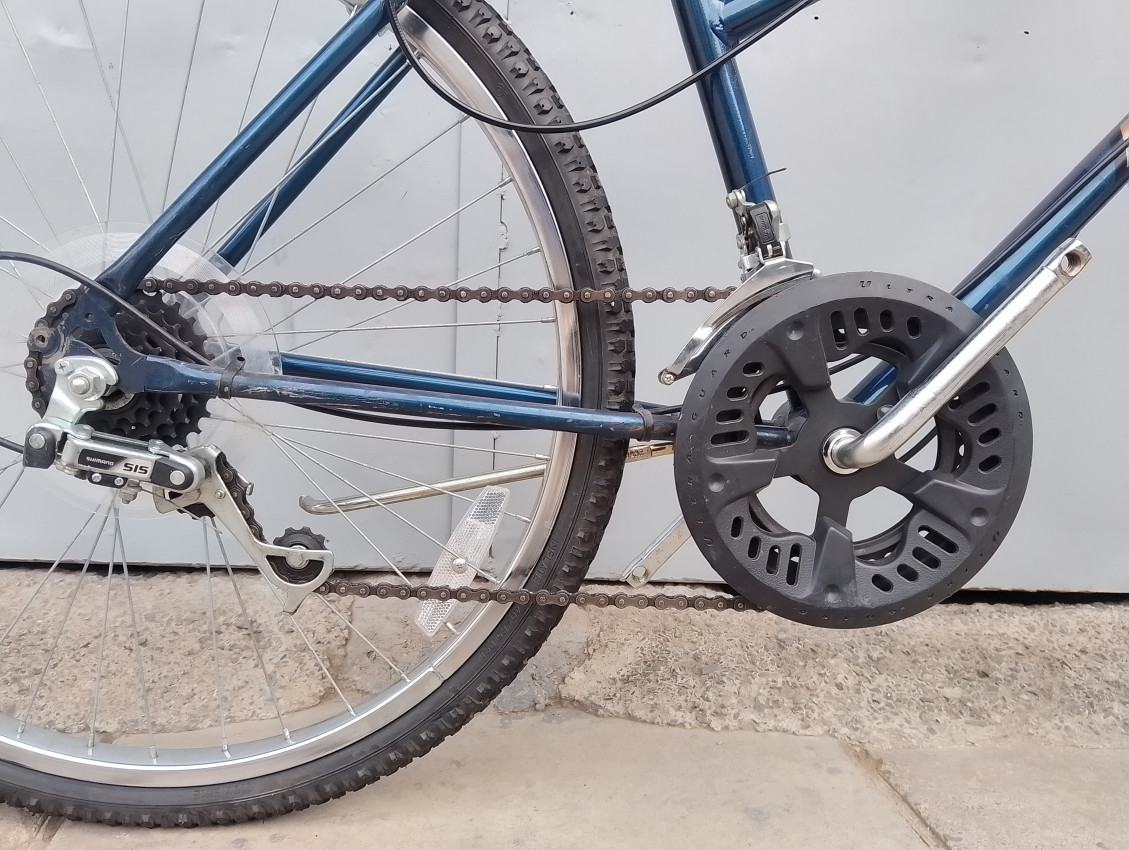 High quality used mountain bike. Wheel size 26. Frame material steel with steel fork. Top tube 22', seat tube height 19'. Gear system 2x5 with thumb shift. Cog type freewheel.