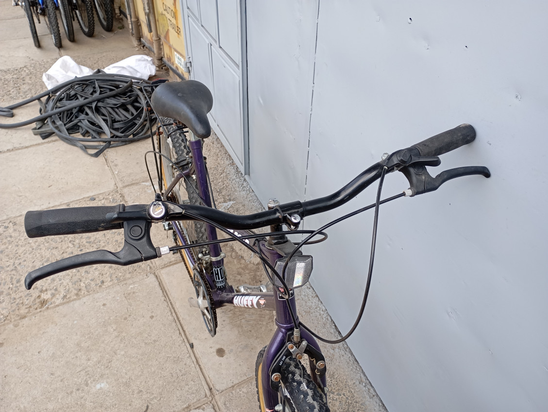 High quality used mountain bike. Wheel size 26. Frame material steel with steel fork. Top tube 21.5', seat tube height 18.5'. Gear system 3x6 with thumb shift. Cog type freewheel.