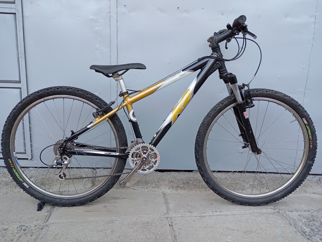 High quality used mountain bike. Wheel size 26. Frame material Aluminium with aluminium front suspension fork. Top tube 21.5', seat tube height 14'. Gear system 3x7 with shimano trigger shiftbrake lever. Cog type cassette Other features: sealed BB all wheels have quick release, alloy threadless suspension fork.