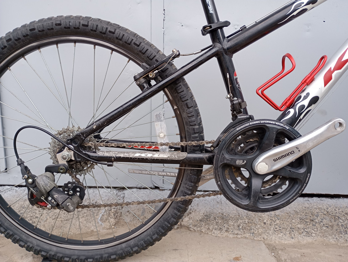 High quality used mountain bike. Wheel size 24 Frame material aluminium. Gear system 3x7 speed with grip shifters. Cog type freewheel. Other features: front threadless suspension fork.