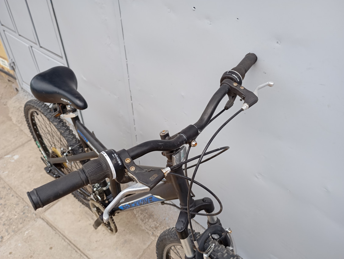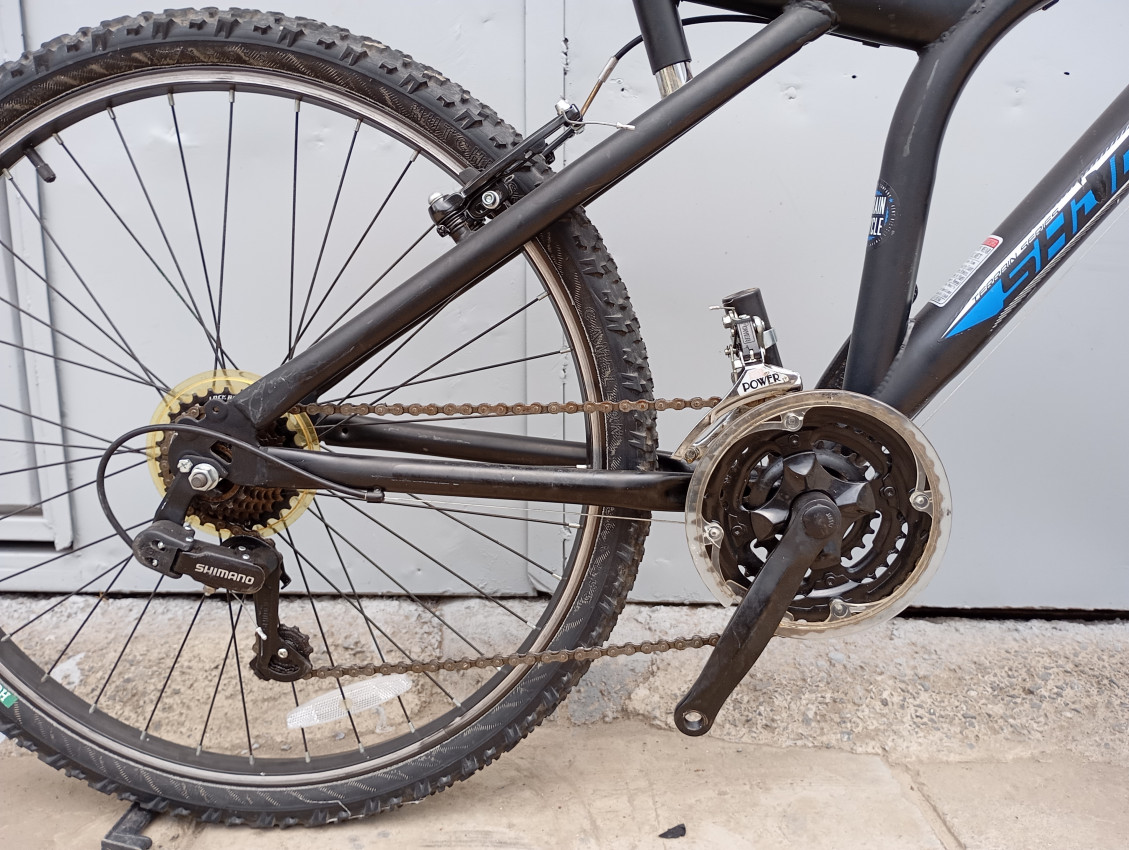High quality used mountain bike. Wheel size 26. Frame material steel with steel front suspension fork. Top tube 21.5', seat tube height 18.5'. Gear system 3x7 with grip shift. Cog type freewheel.