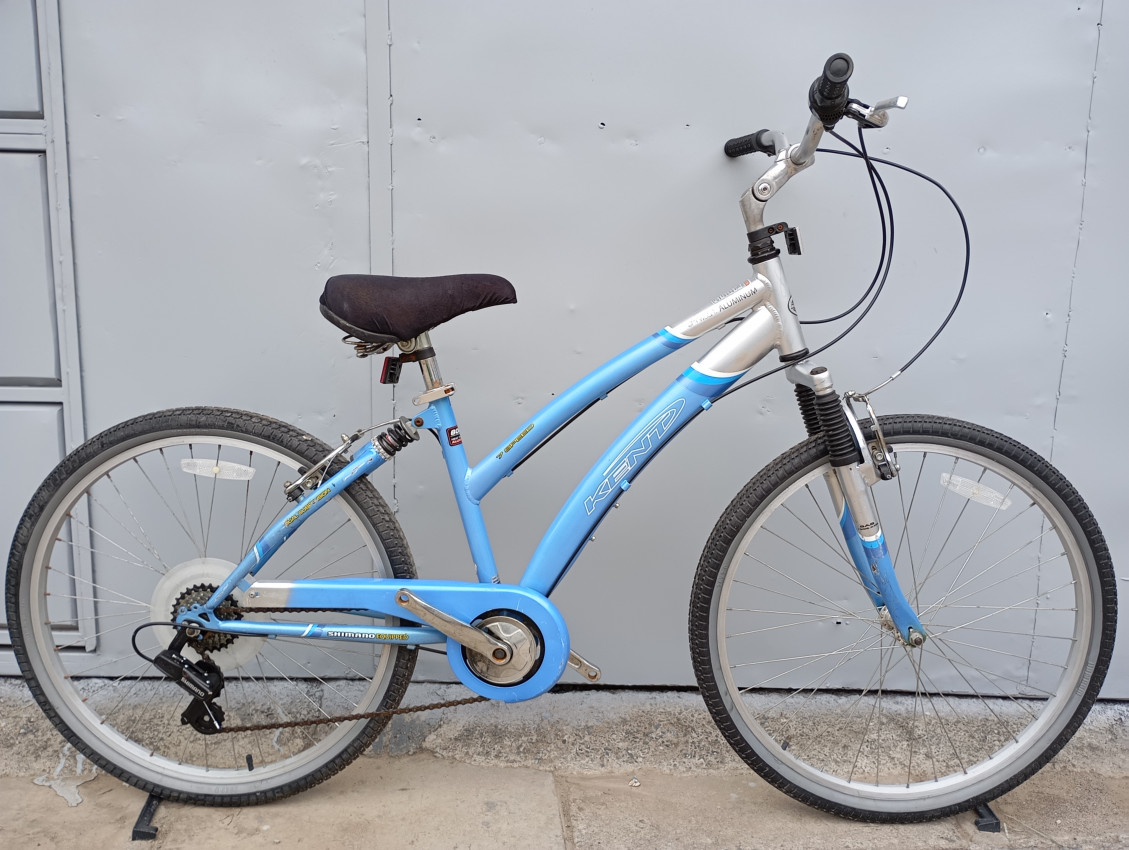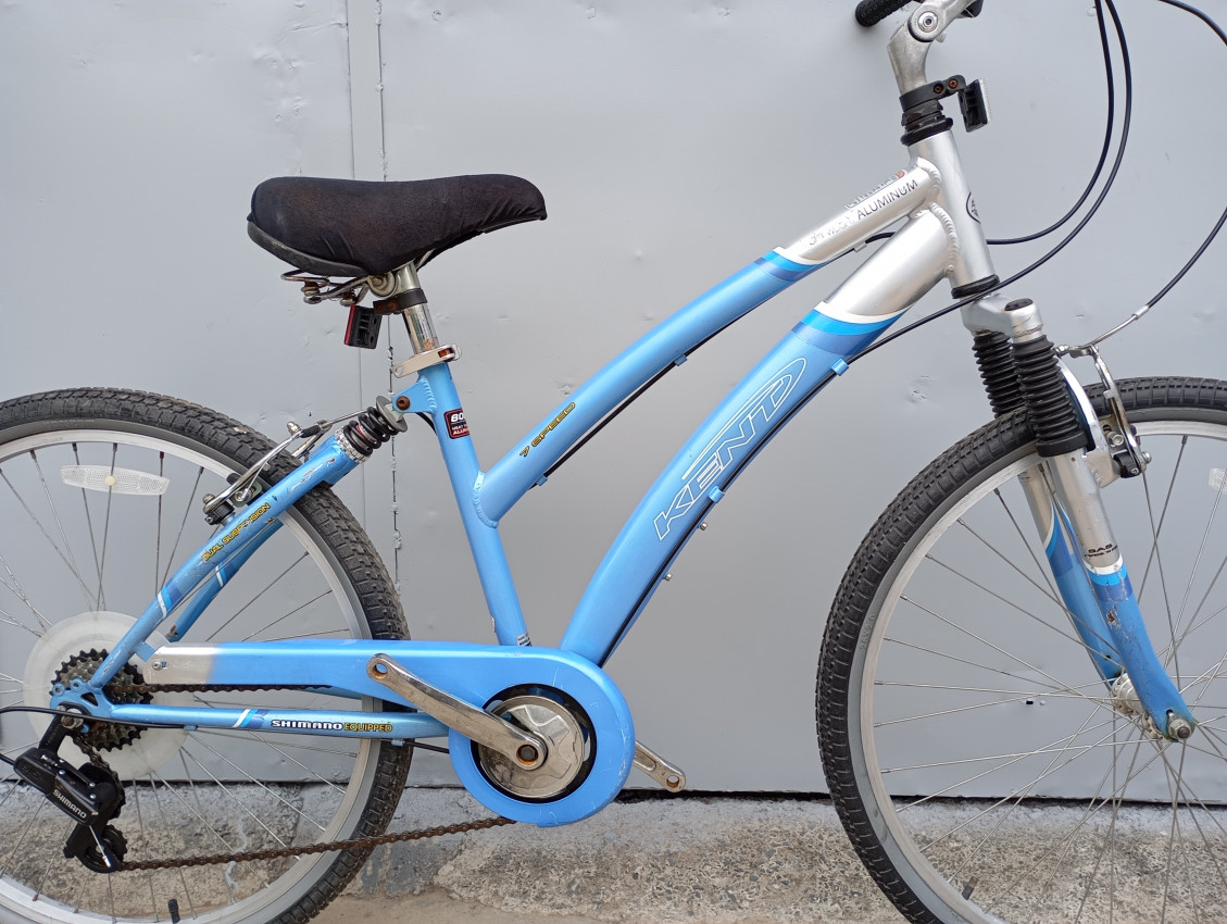 High quality used mountain bike. Wheel size 26. Frame material aluminium. Top tube 20.5', seat tube height 16' . Gear system 1x7 with grip shifters. Cog type freewheel. Other features: dual suspension