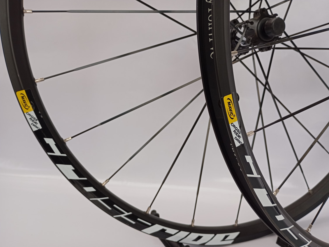 Mavic Cross ride alloy rim set, 32h sealed bearings quick release hubs. Disk brake compatible. Wheel size 29