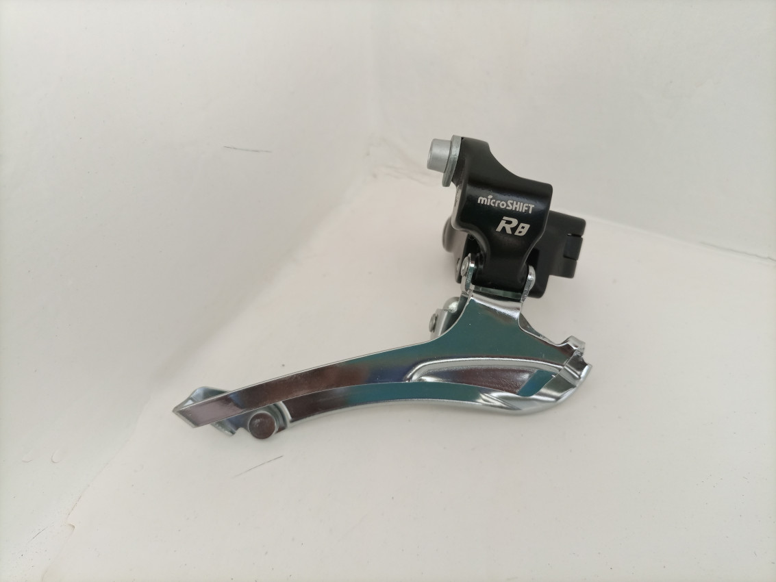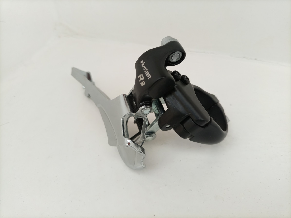 Brand new microshift race. Bike front derailleur. For 2x8 speed drive trains. Compatible with Shimano. With Down pull system, clamp 34.9mm top gear 53t.