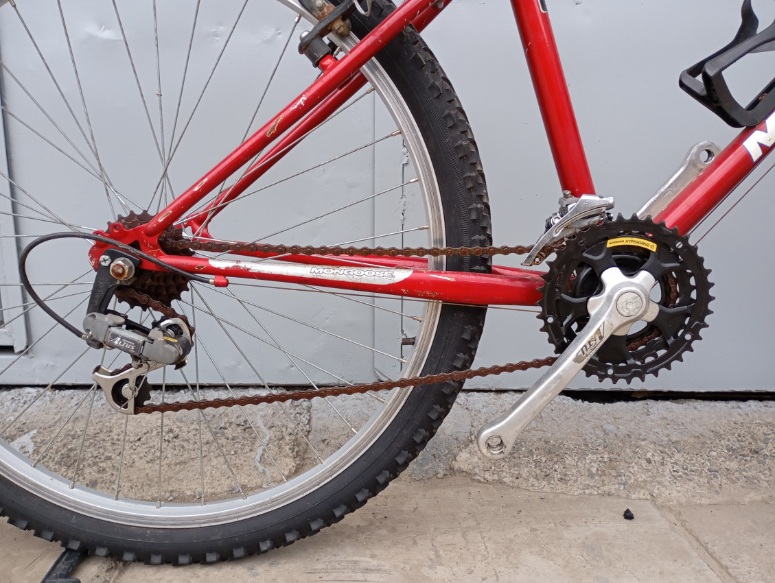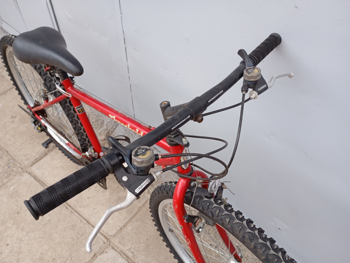 High quality used mountain bike. Wheel size 26. Frame material steel with steel fork. Top tube 20', seat tube height 15'. Gear system 3x7 with thumb shift. Cog type cassette. Quick release on both wheels.