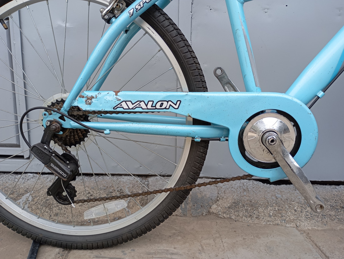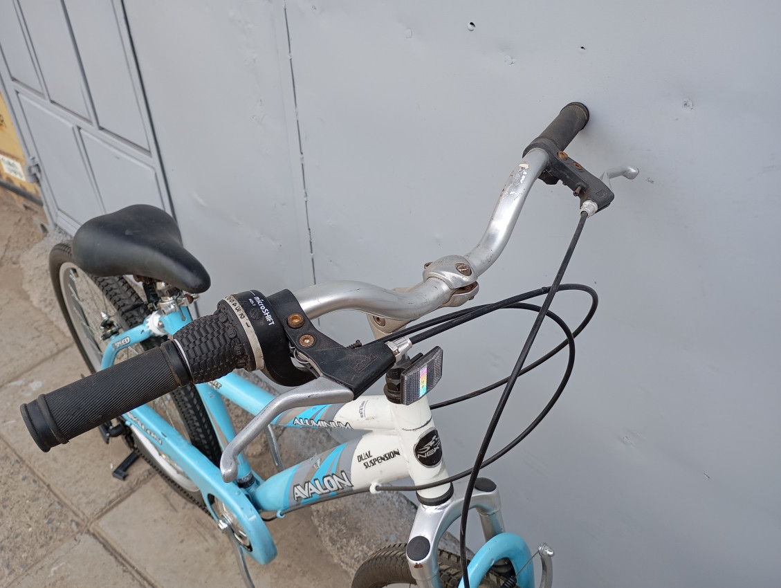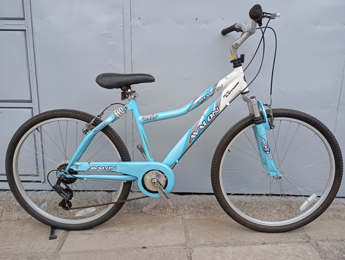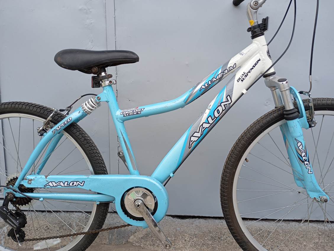 High quality used mountain bike. Wheel size 26. Frame material aluminium. Top tube 20.5', seat tube height 17' . Gear system 1x7 with grip shifters. Cog type freewheel. Other features: dual suspension