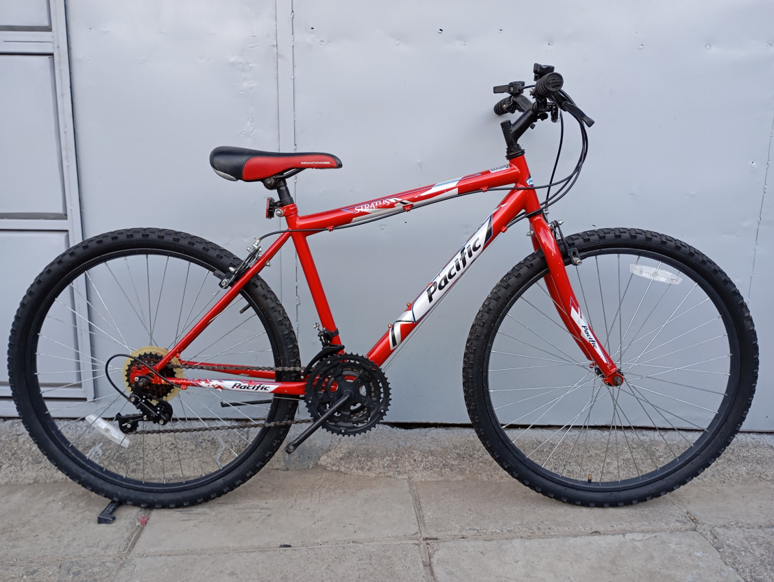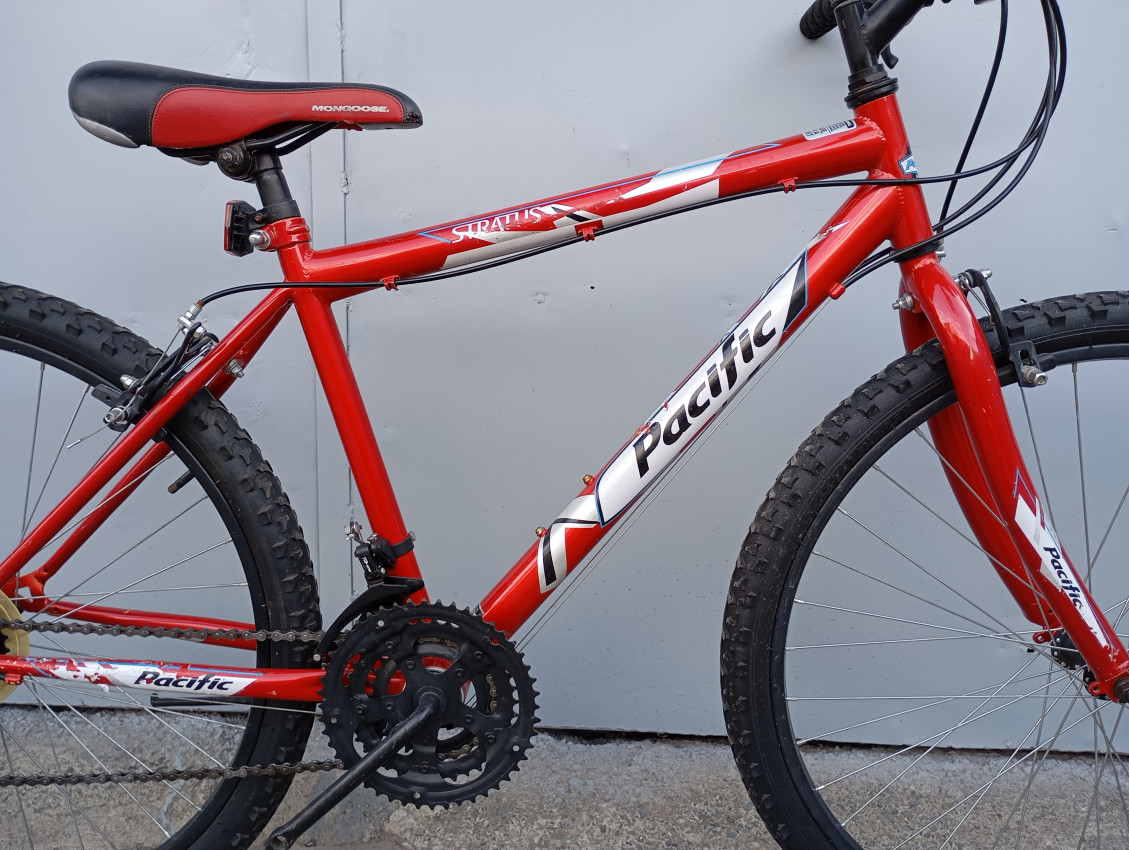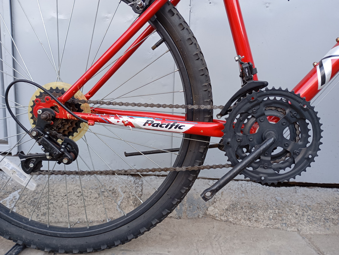 High quality used mountain bike. Wheel size 26. Frame material steel with steel fork. Top tube 19.5', seat tube height 17'. Gear system 3x5 with thumb shift. Cog type freewheel.