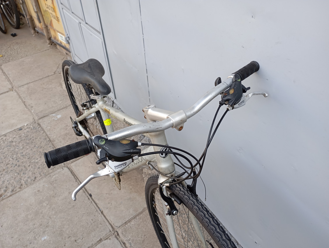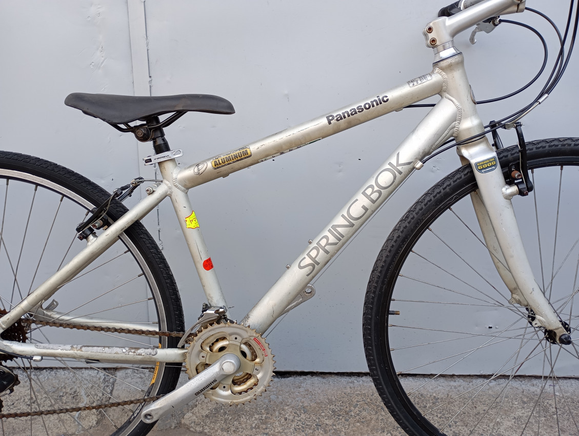 High quality used hybrid bike. Wheel size 700c. Frame material Aluminium with aluminium fork. Top tube 20.5', seat tube height 15.5'. Gear system 3x7 with shimano trigger shift brake levers. Cog type freewheel. Other features: sealed BB all wheels have quick release & and threadless rigid alloy fork.
