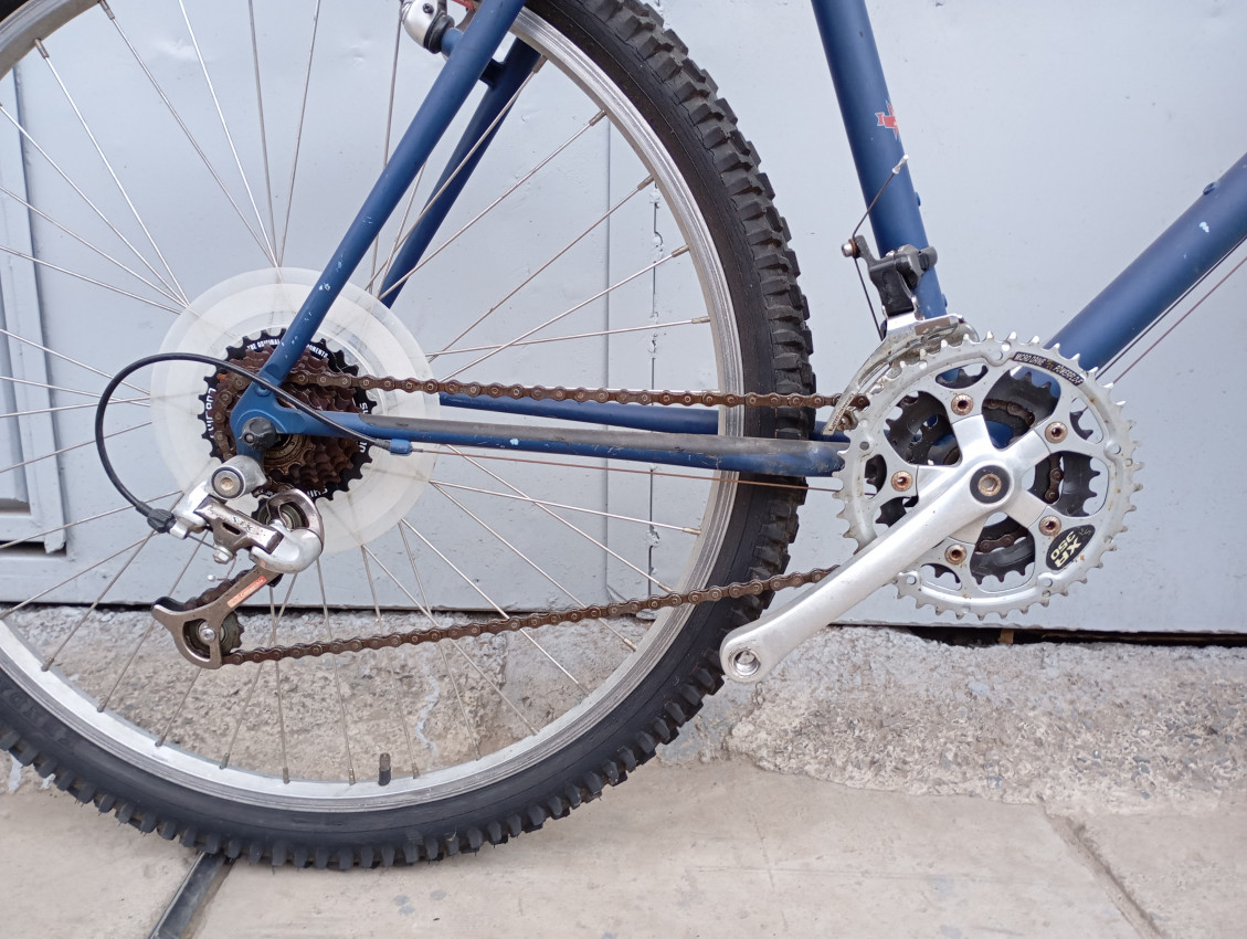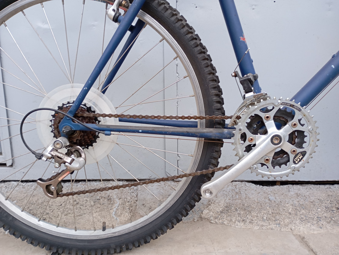 High quality used mountain bike. Wheel size 26. Frame material steel with aluminium front suspension fork. Top tube 23', seat tube height 20'. Gear system 3x7 with shimano trigger shifter. Cog type freewheel Other features: sealed BB all wheels have quick release, threadless alloy suspension fork