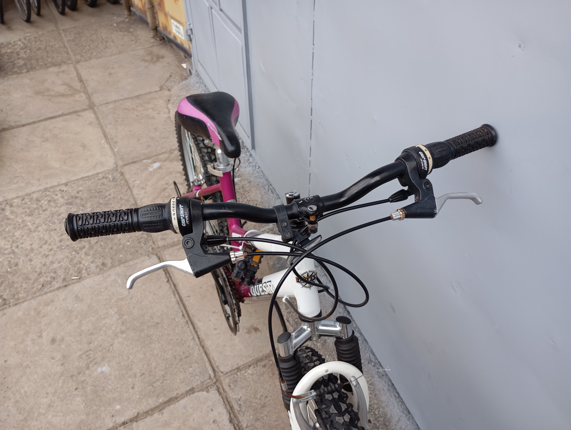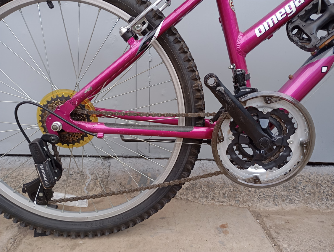 High quality used mountain bike. Wheel size 24 Frame material aluminium. Gear system 3x7 speed with grip shifters. Cog type freewheel. Other features: front wheel quick release, front suspension fork.