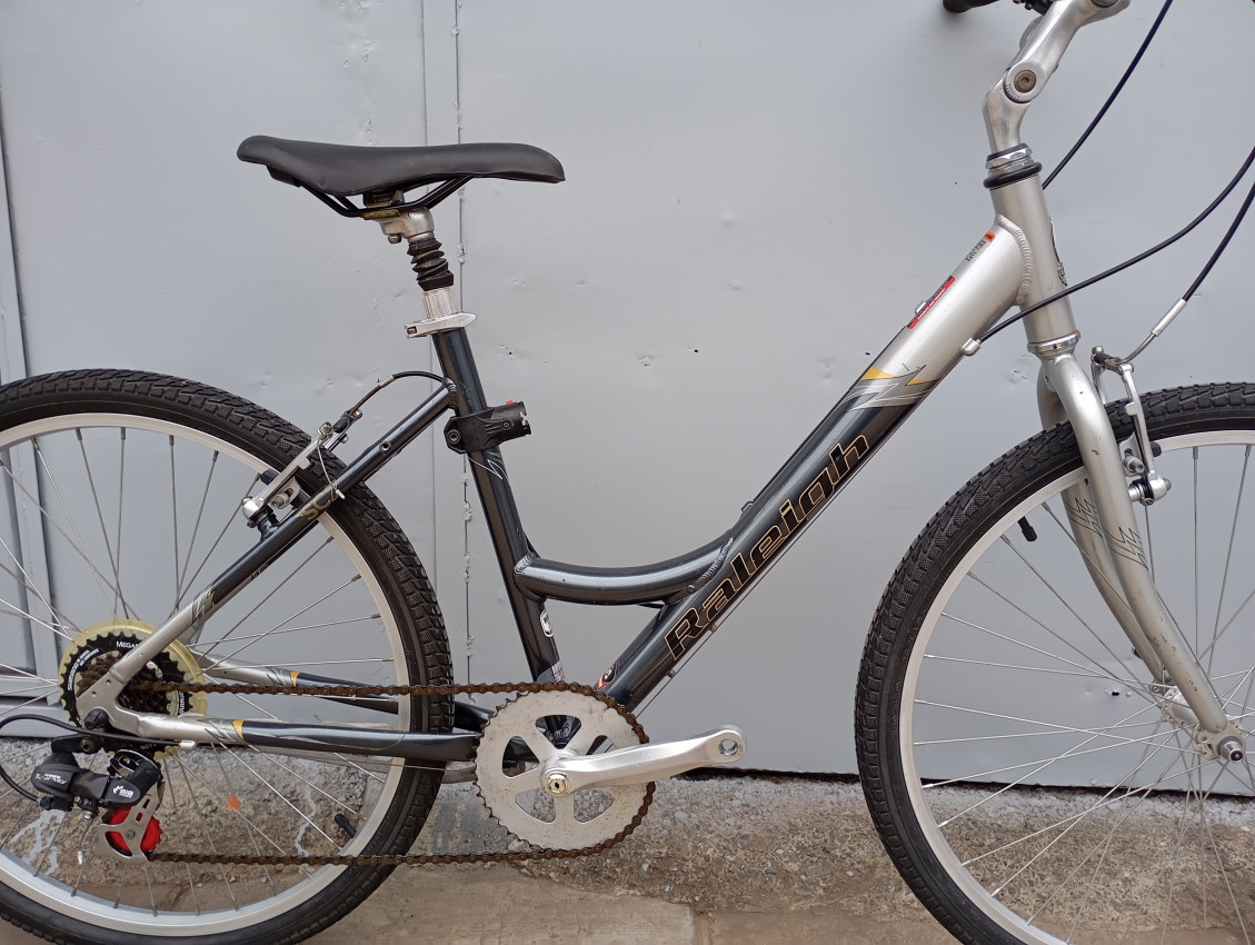 High quality used mountain bike. Wheel size 26. Frame material steel. Top tube 20.5', seat tube height 17.5'. Gear system 3x7 with grip shifts. Cog type freewheel. Other features: all wheels have quick release, adjustable quail stem.