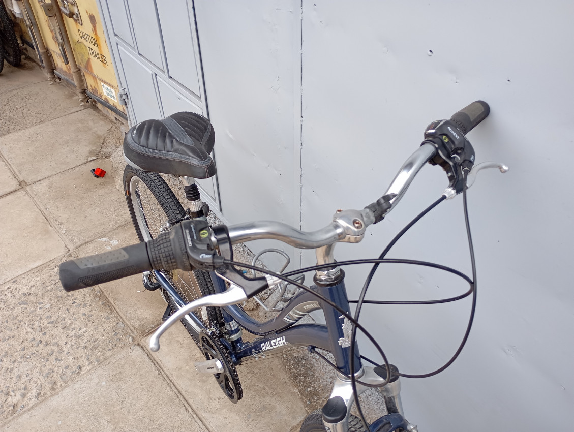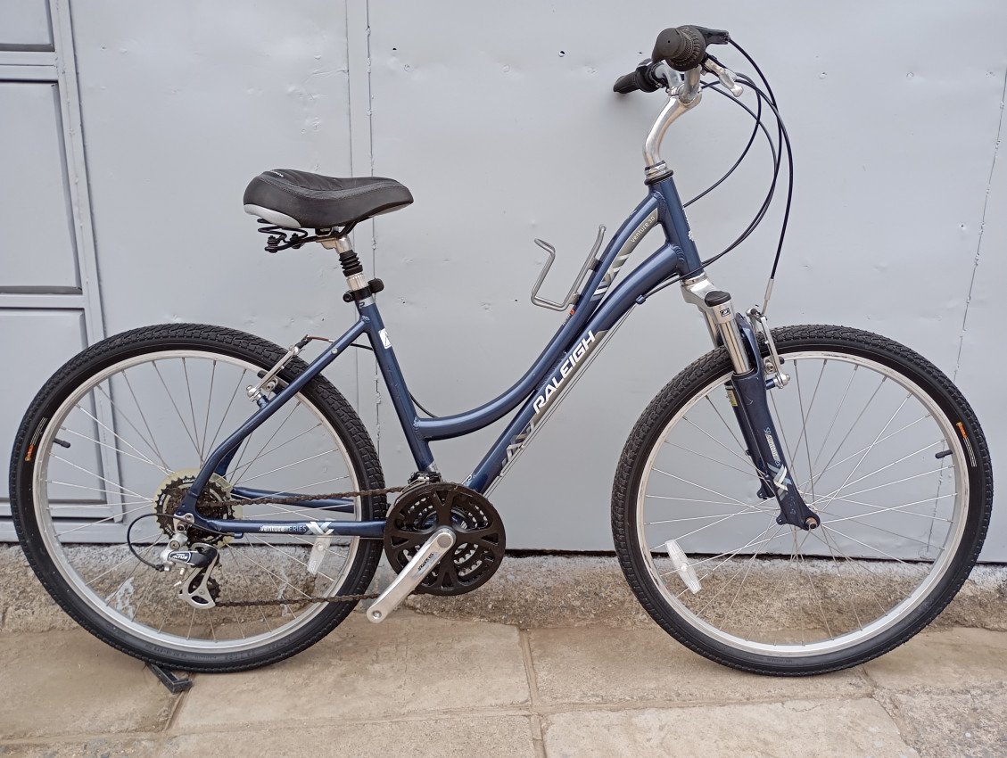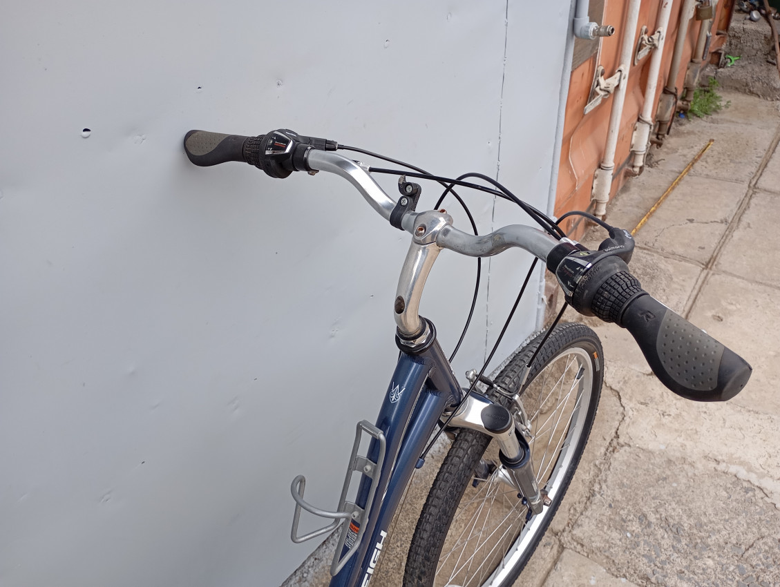 High quality used mountain bike. Wheel size 26. Frame material Aluminium with aluminium front suspension fork. Top tube 20.5', seat tube height 17.5'. Gear system 3x7 with shimano grip shifter. Cog type freewheel. Other features: sealed BB, all wheels have quick release, adjustable quail stem & threaded alloy suspension fork.