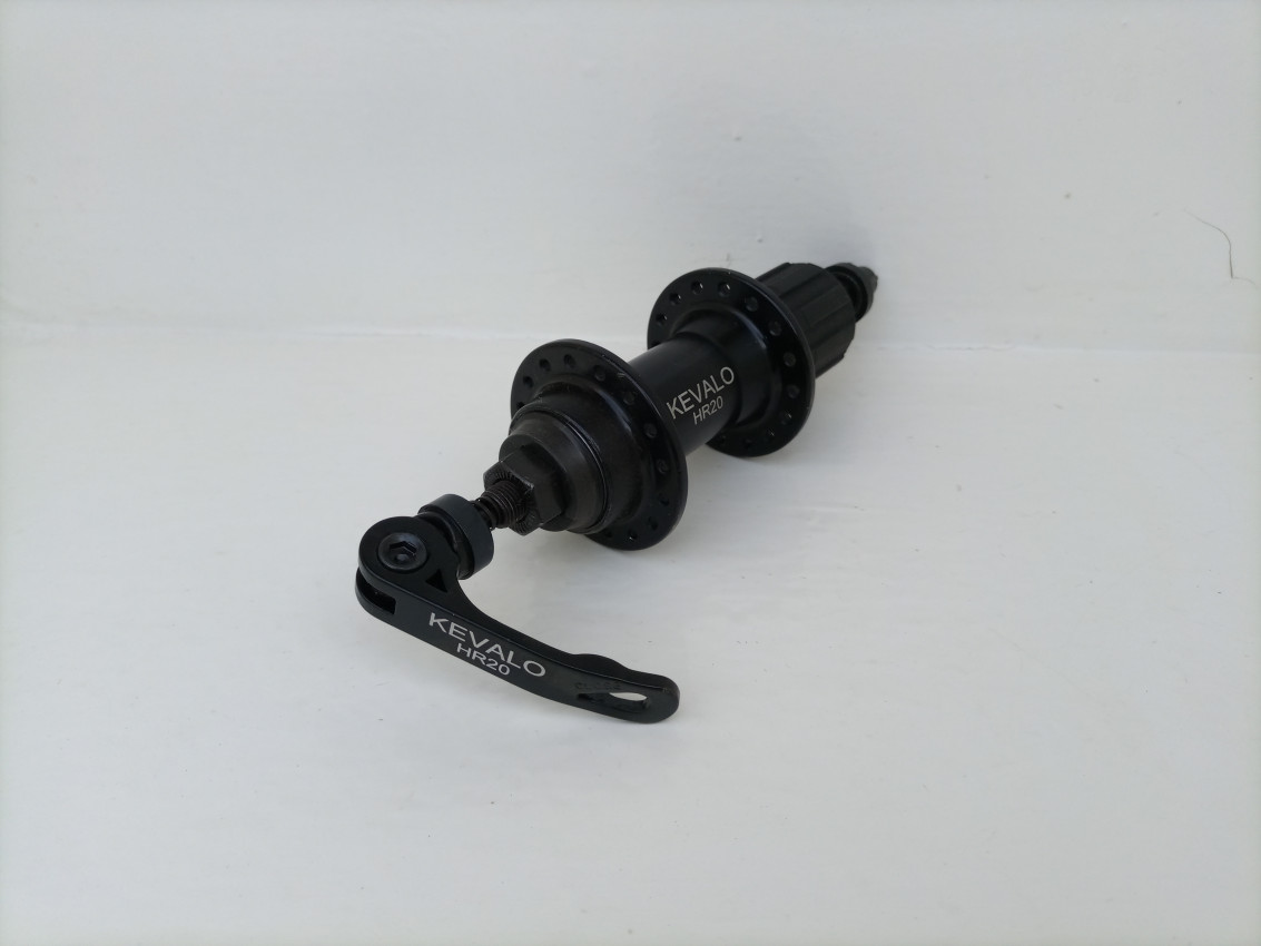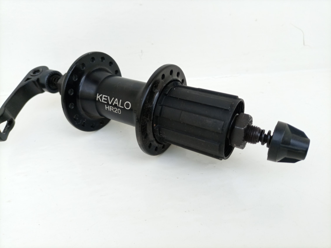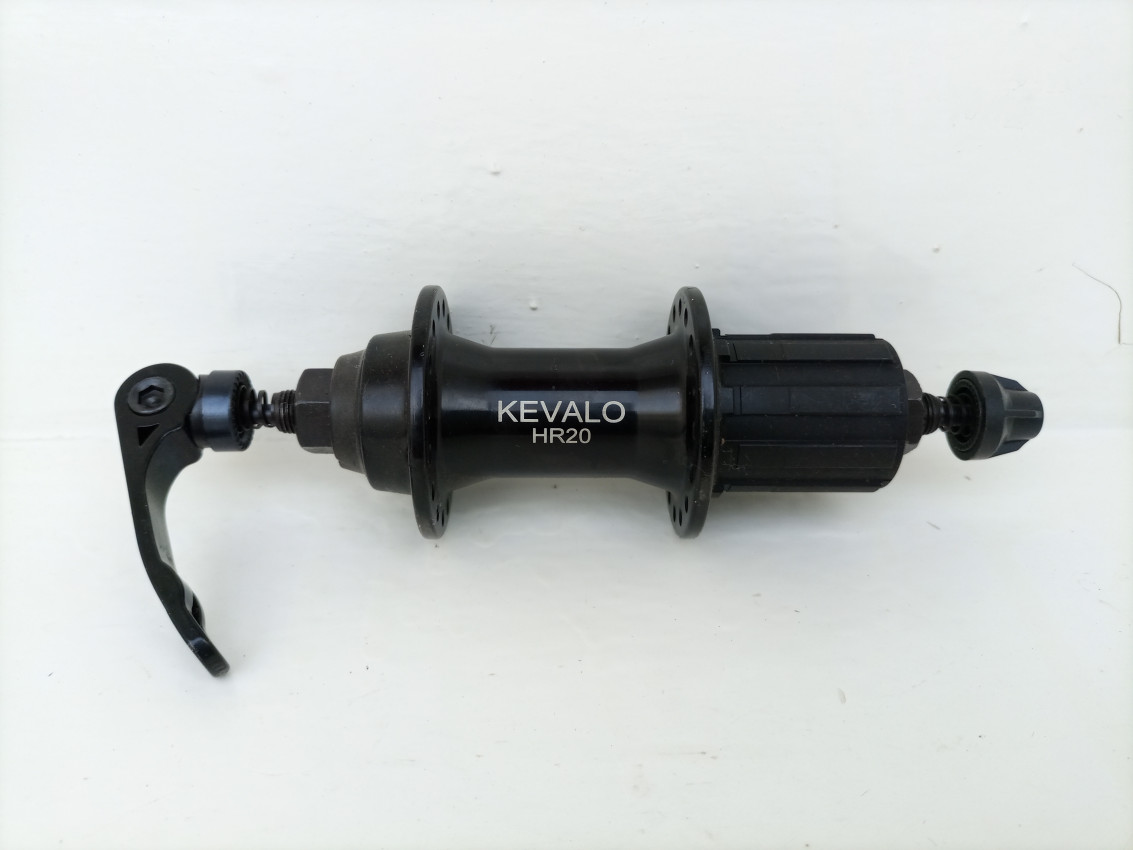 Rear hub, suitable for v-brake and calliper brake wheels.  For cassette sprocket 8-10 spd. Brand Kevalo. With QR skewer. 32 holes alloy. (1010948)