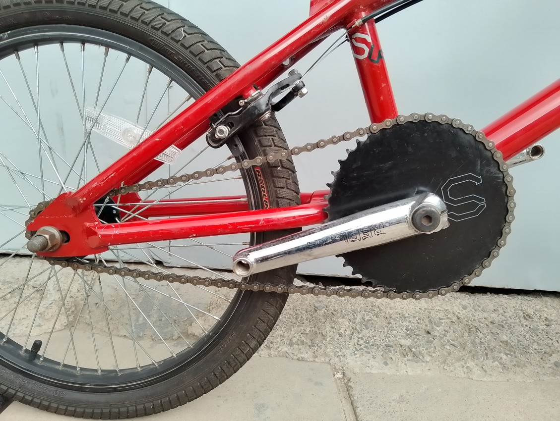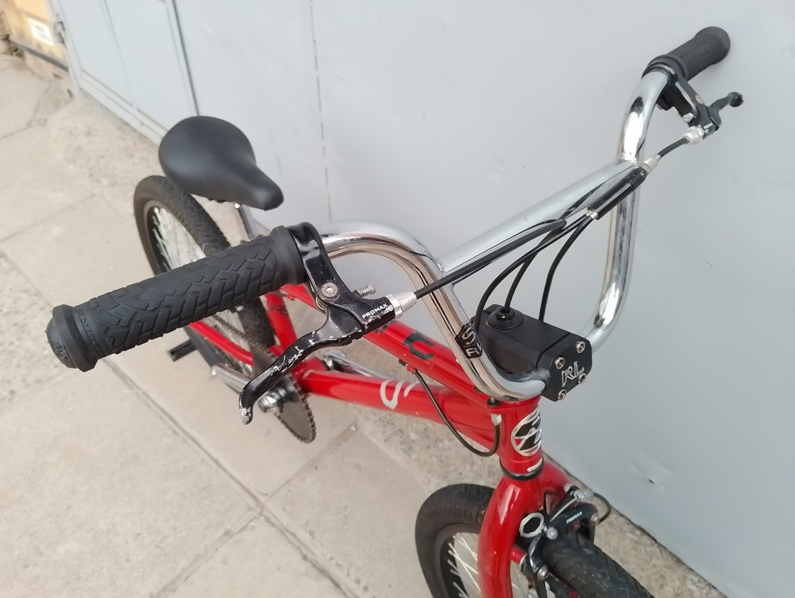High quality Used BMX stunt bike, wheel size 20, frame material steel. Drive train; single speed. With a functioning 360 rotor and brake system.