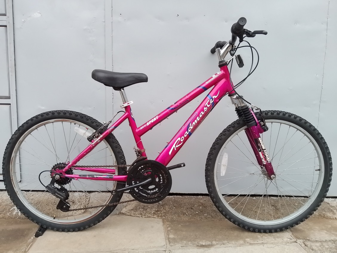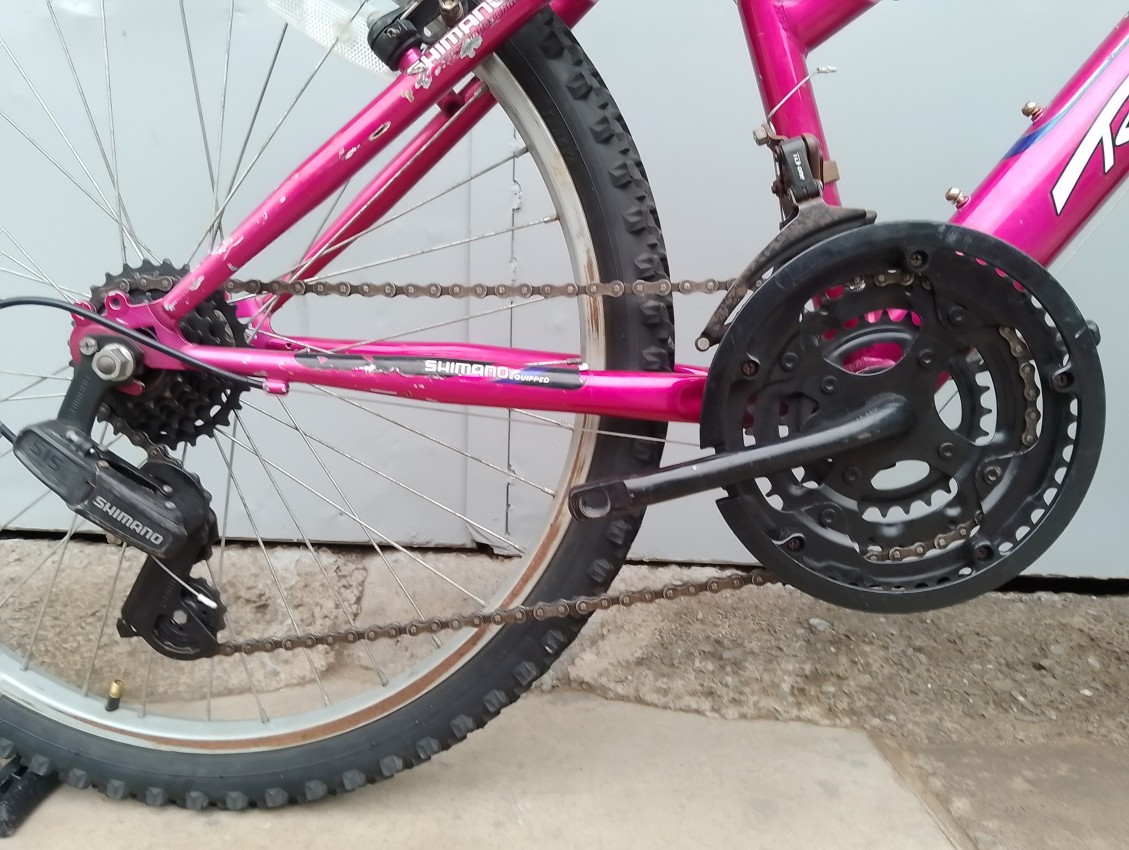 High quality used mountain bike. Wheel size 24 Frame material steel. Gear system 3x6 speed with grip shifters. Cog type freewheel. Other features: front suspension fork.