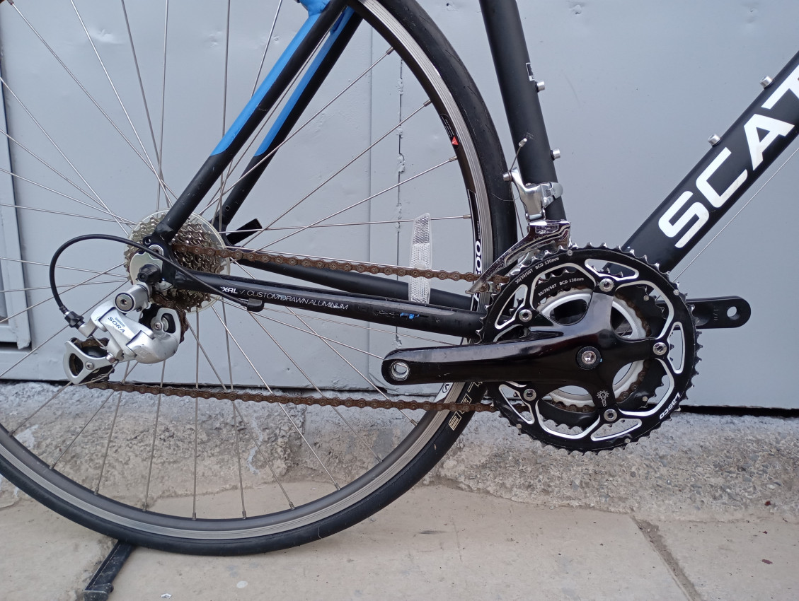 High quality used hybrid bike. Wheel size 700c. Frame material Aluminium with carbon fork. Top tube 20', seat tube height 20'. Gear system 3x9 with shimano trigger shifters. Cog type cassette. Other features: sealed BB all wheels have quick release.