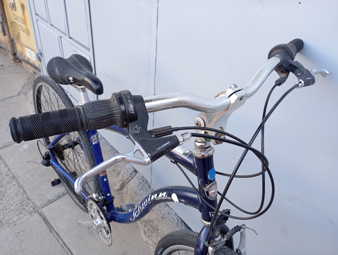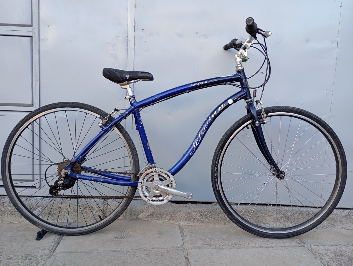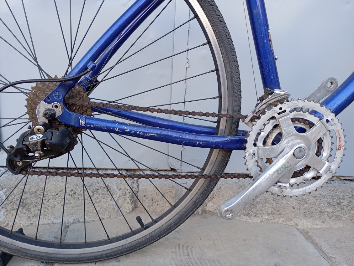 High quality used hybrid bike. Wheel size 700c. Frame material Aluminium with steel fork. Top tube 22.5', seat tube height 18.5'. Gear system 3x8 with grip shift . Cog type cassette. Other features: sealed BB all wheels have quick release & adjustable quail stem.