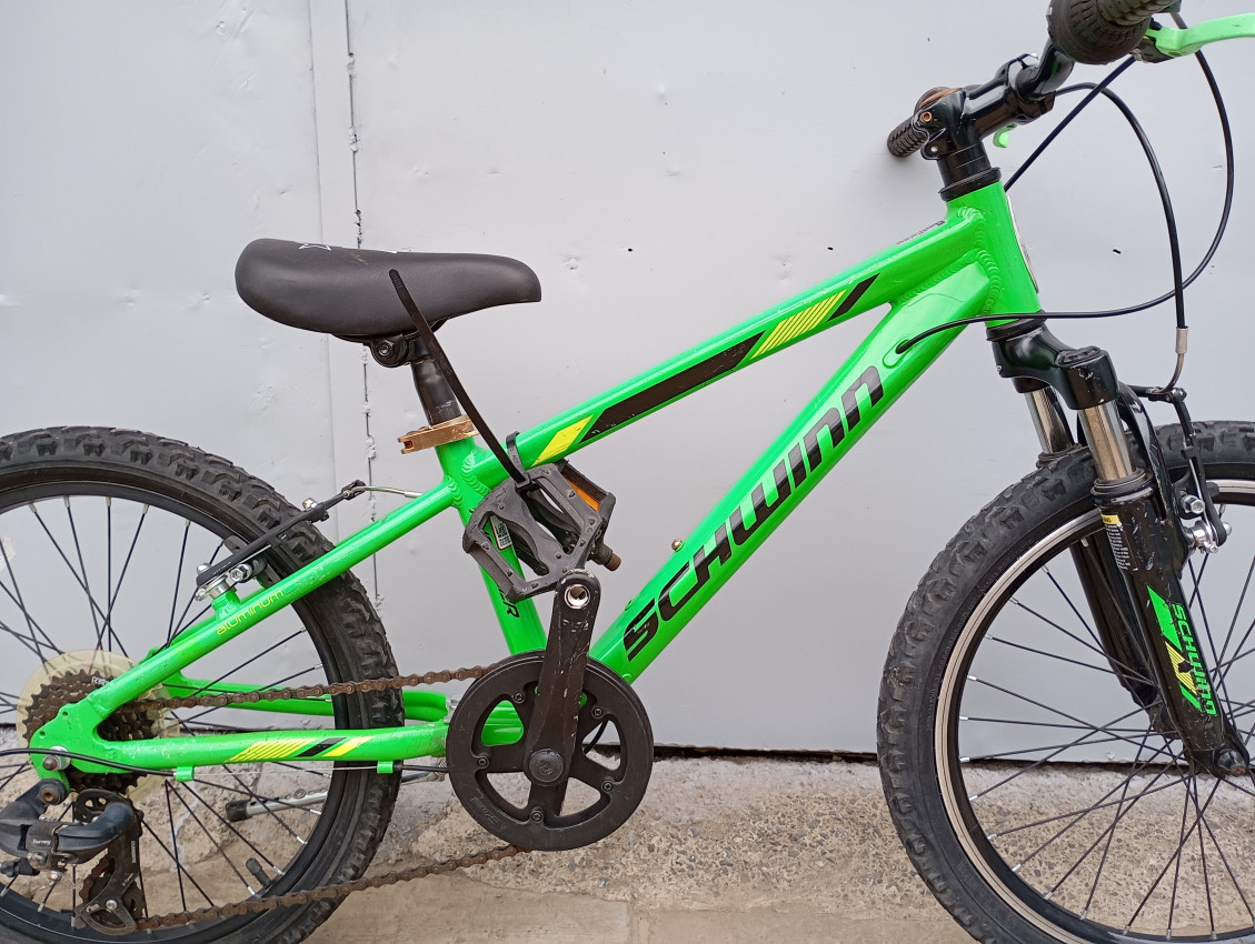 High quality used mountain bike. Wheel size 20 Frame material aluminium. Gear system 1x6 speed with grip shifters. Cog type freewheel. Other features: threadless suspension fork, Suitable for ages 6-11 years.