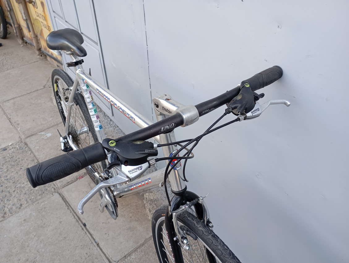 High quality used hybrid bike. Wheel size 700c. Frame material Aluminium with steel fork. Top tube 24', seat tube height 23.5'. Gear system 3x8 with grip shift . Cog type freewheel. Other features: sealed BB all wheels have quick release.
