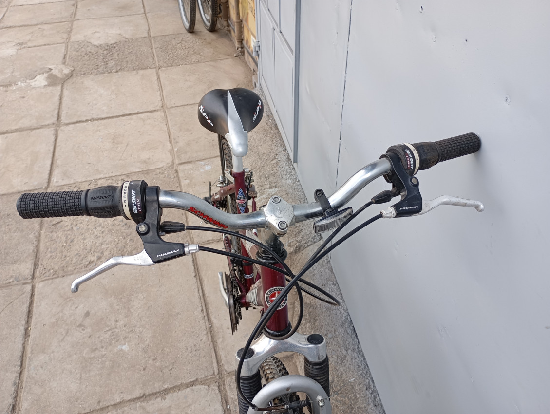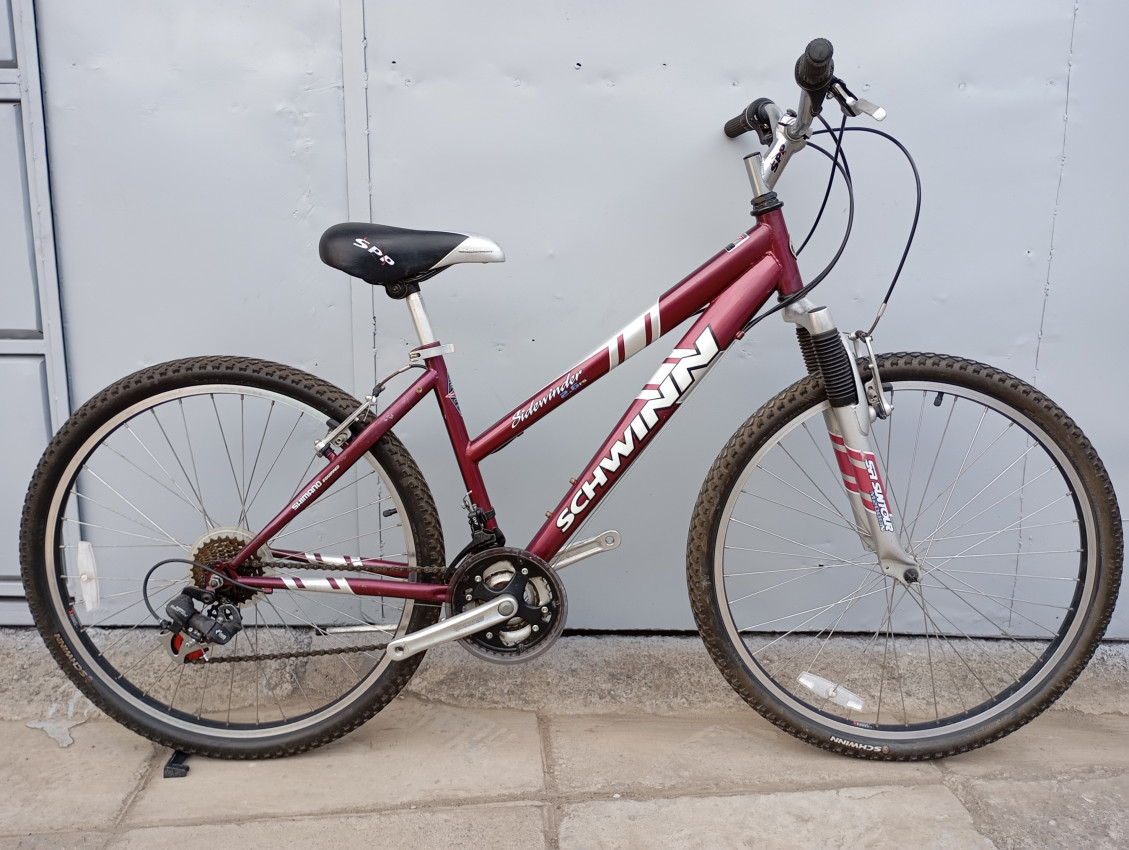 High quality used mountain bike. Wheel size 26. Frame material steel. Top tube 21.5', seat tube height 16' . Gear system 3x7 speed with grip shifters. Cog type freewheel. Other features: front wheel quick release, front suspension fork.