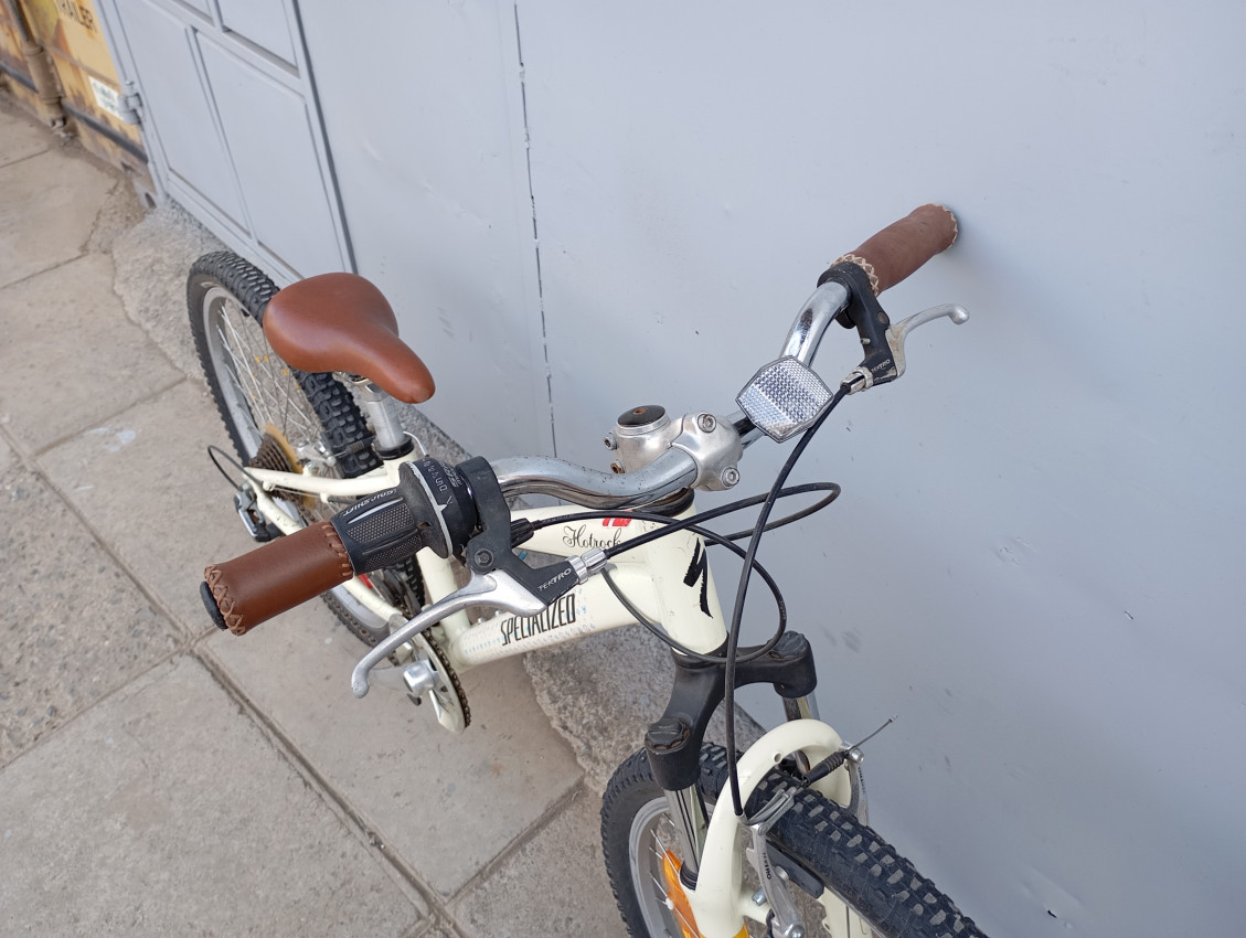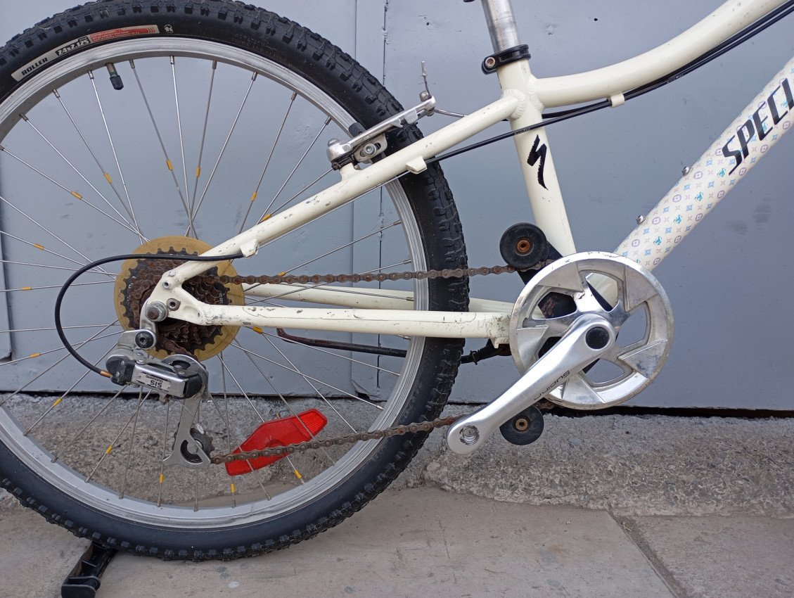 High quality used mountain bike. Wheel size 24 Frame material aluminium. Gear system 1x7 speed with grip shifters. Cog type freewheel. Other features: threadless alloy suspension fork.