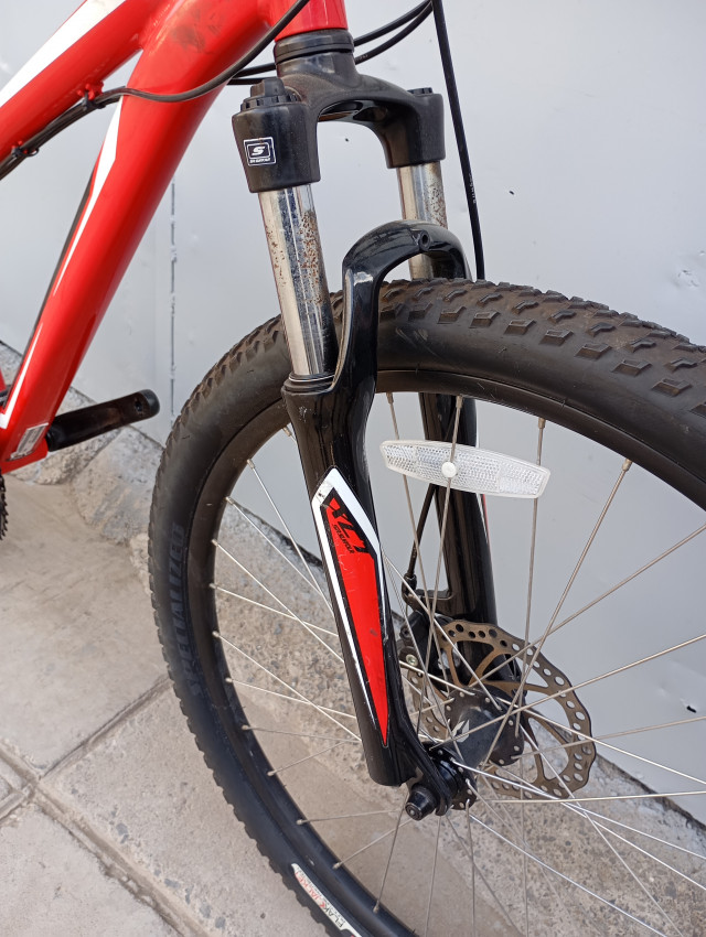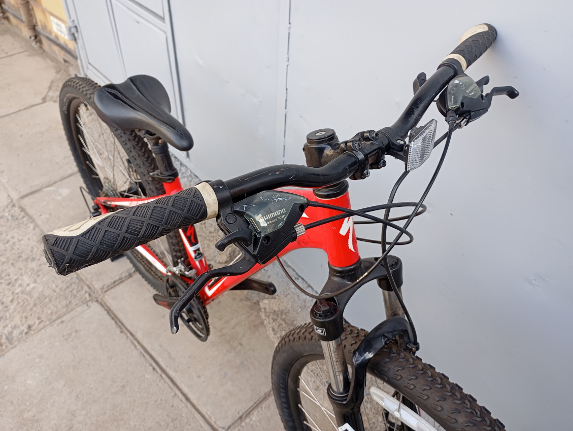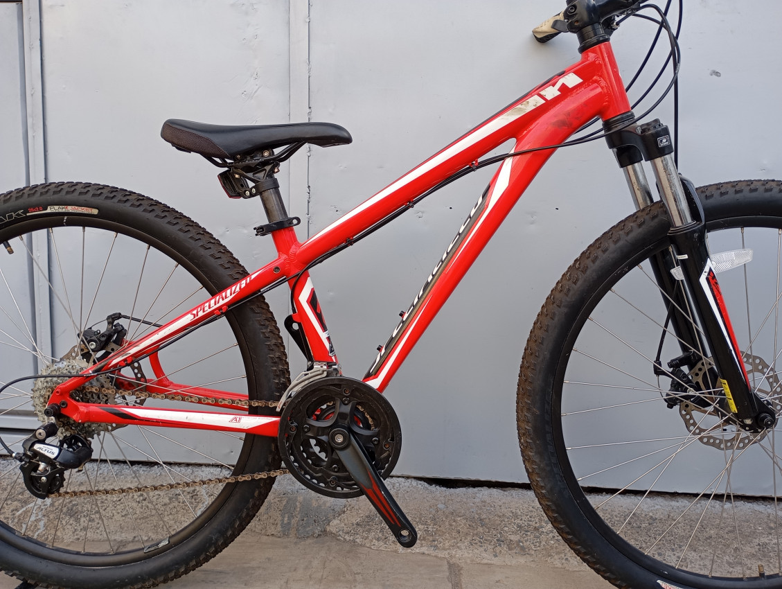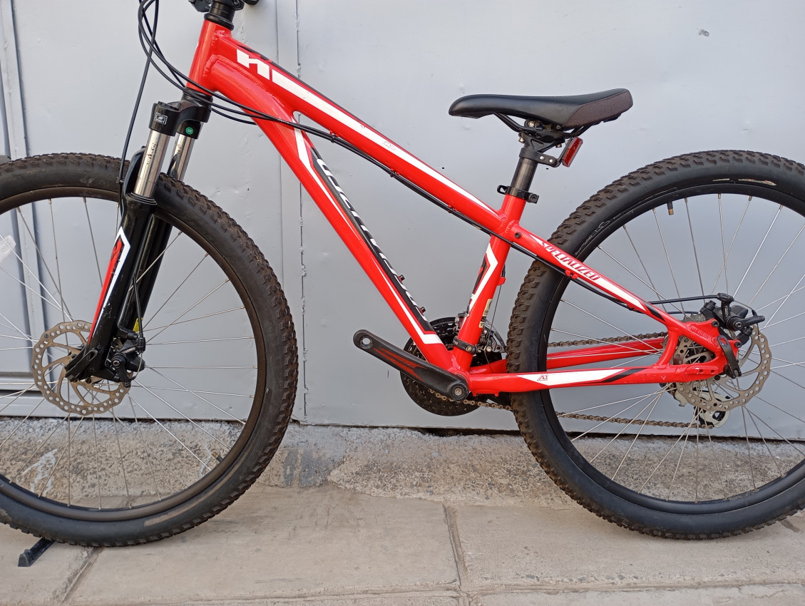 High quality used mountain bike. Wheel size 26. Frame material Aluminium with aluminium front suspension fork. Top tube 21.5', seat tube height 17'. Gear system 3x8 with shimano shift brake lever. Cog type cassette Other features: sealed BB all wheels have quick release, threadless suspension fork & front and rear disk brakes.