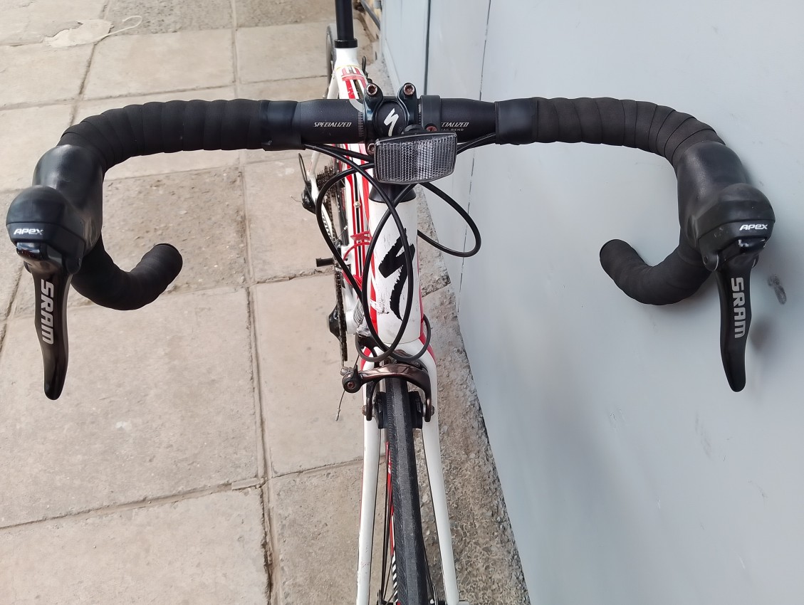 High quality used race bike. Wheel size 700c. Frame material Aluminium with a carbon fork.Top tube 54cm, seat tube height 54cm . Gear system 2x10 speed. Sram rival drive train . Cog type cassette. Other features: hollwtech 2 BB, all wheels have quick release, carbon fork.