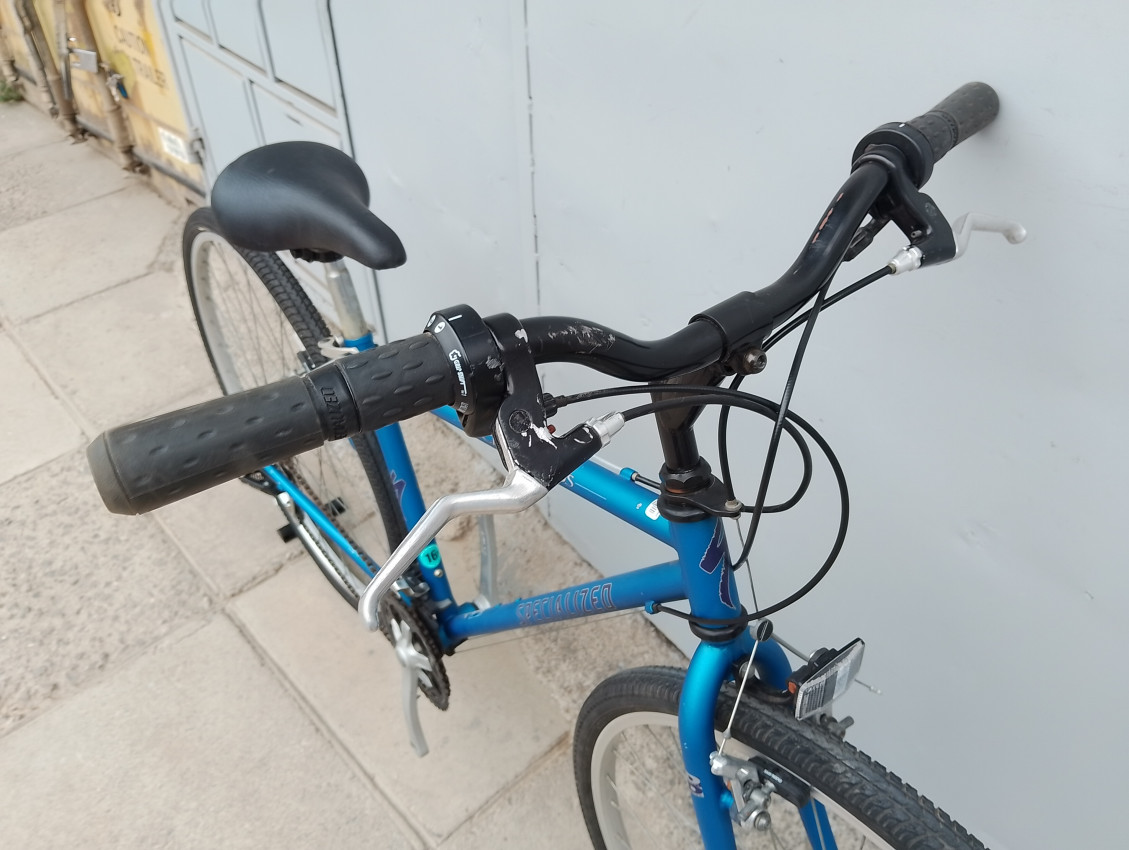 High quality used hybrid bike. Wheel size 700c. Frame material steel.Top tube 20.5', seat tube height 16.5'. Gear system 3x7 with grip shifts. Cog type cassette. Other features: all wheels have quick release.